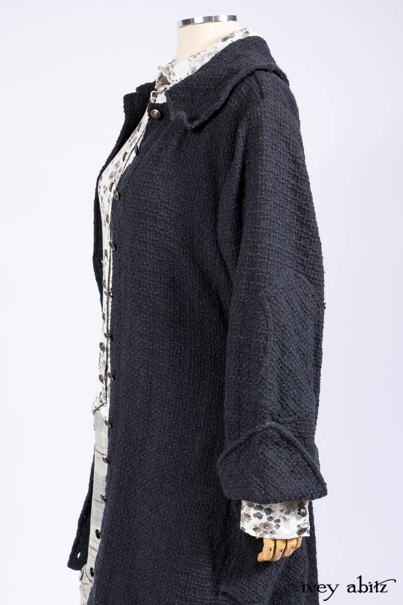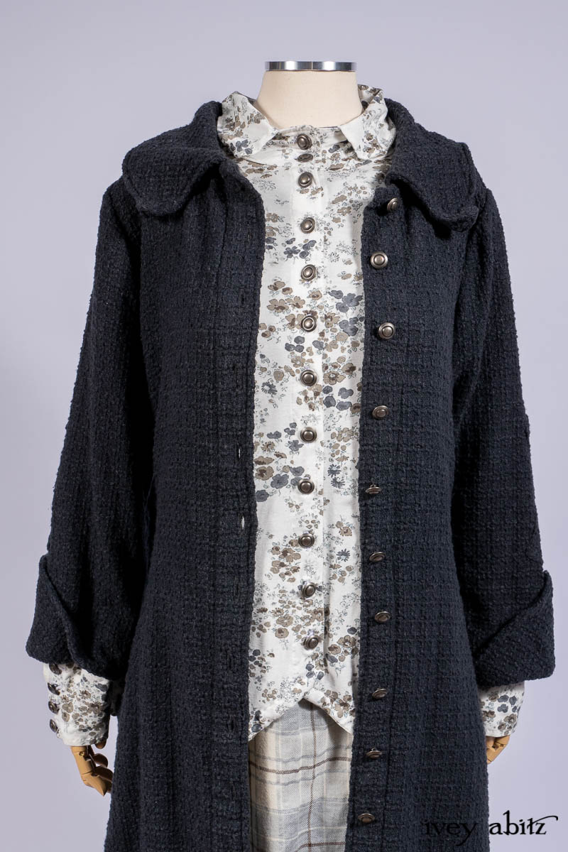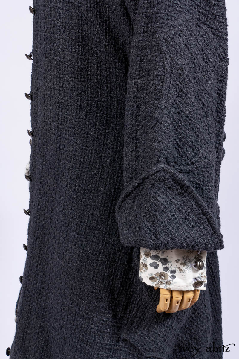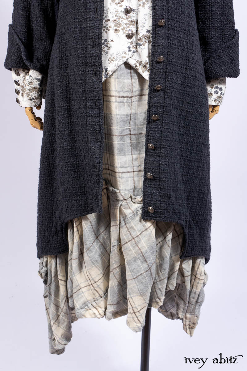 - Chittister Duster Coat in Slate Embroidered Windowpane Weave
