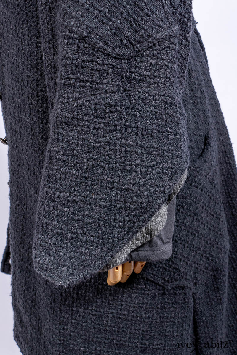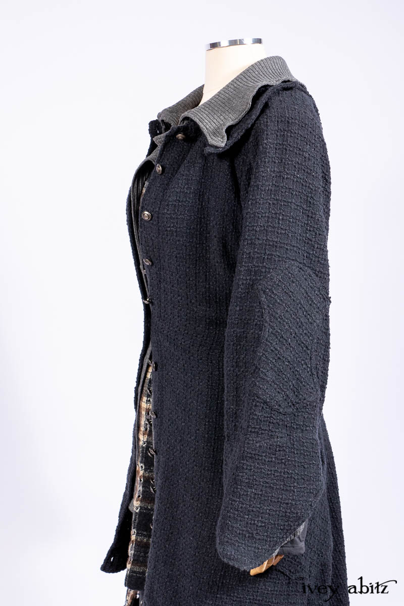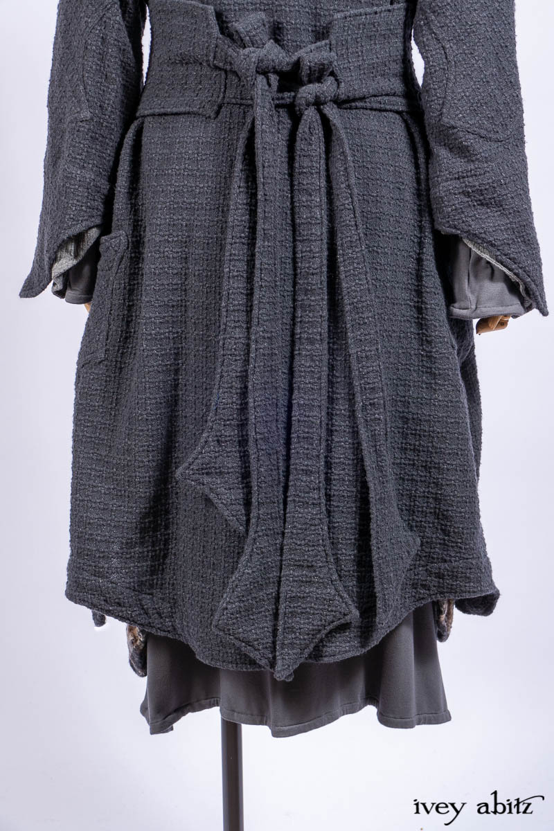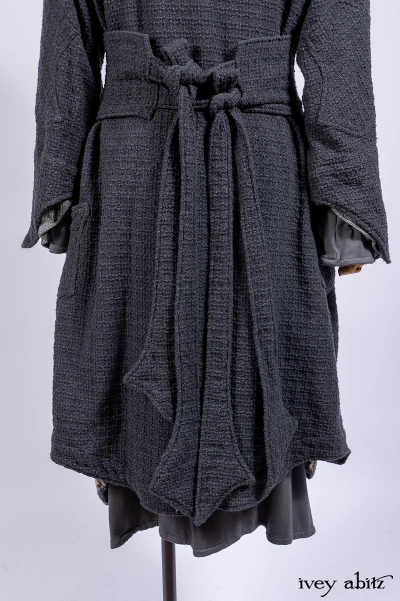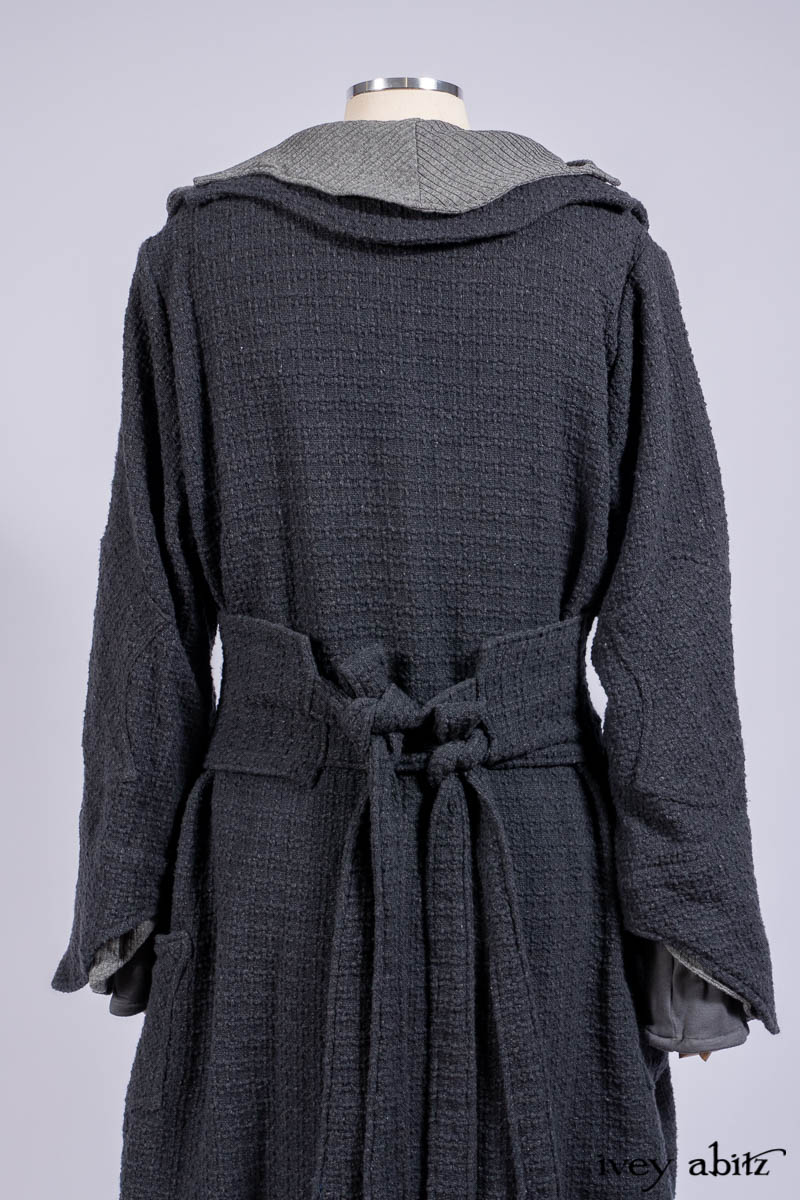 • Chittister Duster Coat in Slate Embroidered Windowpane Weave