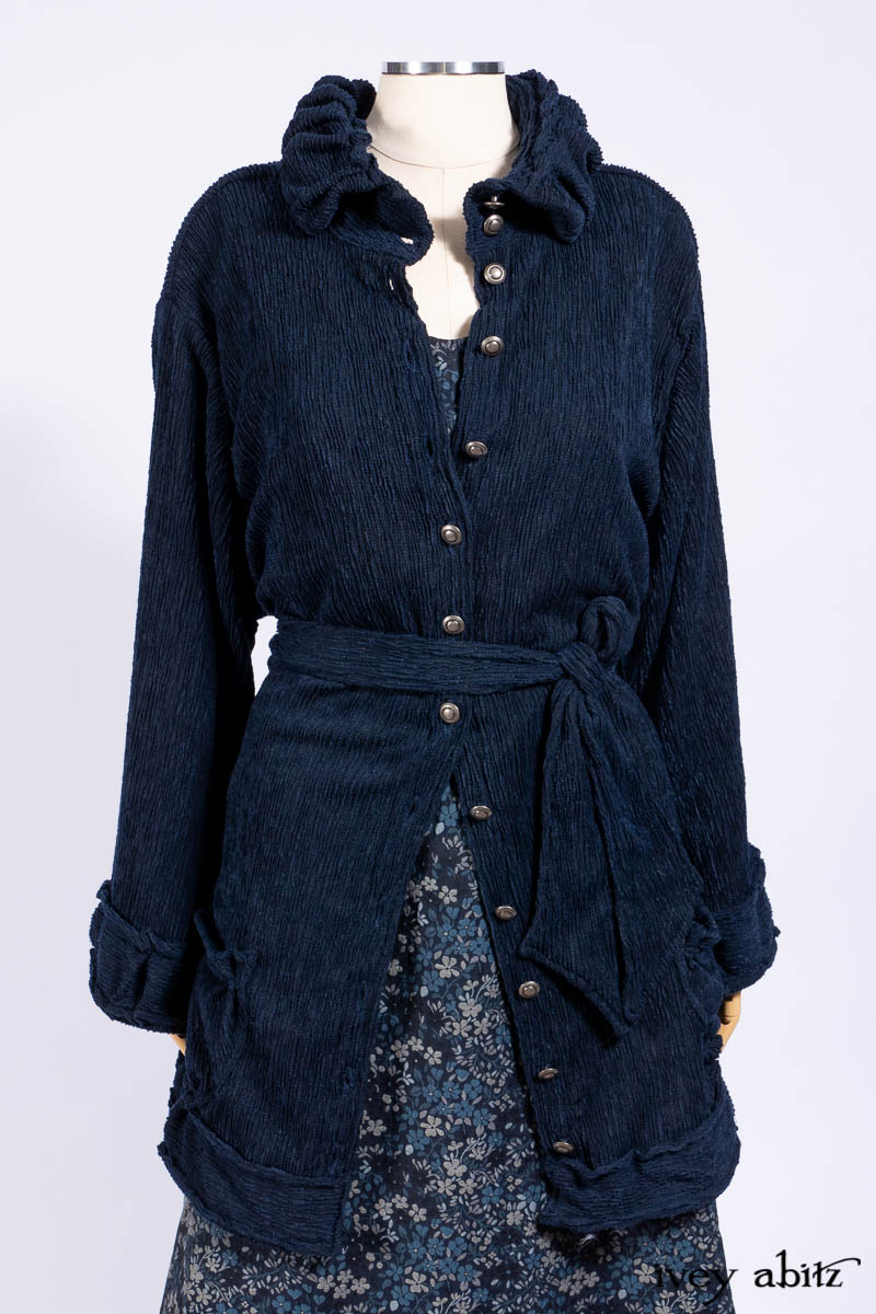 - Gabled Shirt Jacket in Hudson River Silky Crinkled Weave