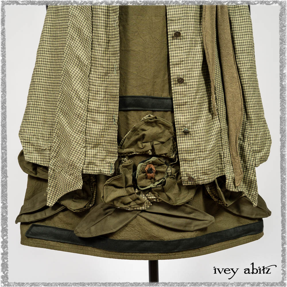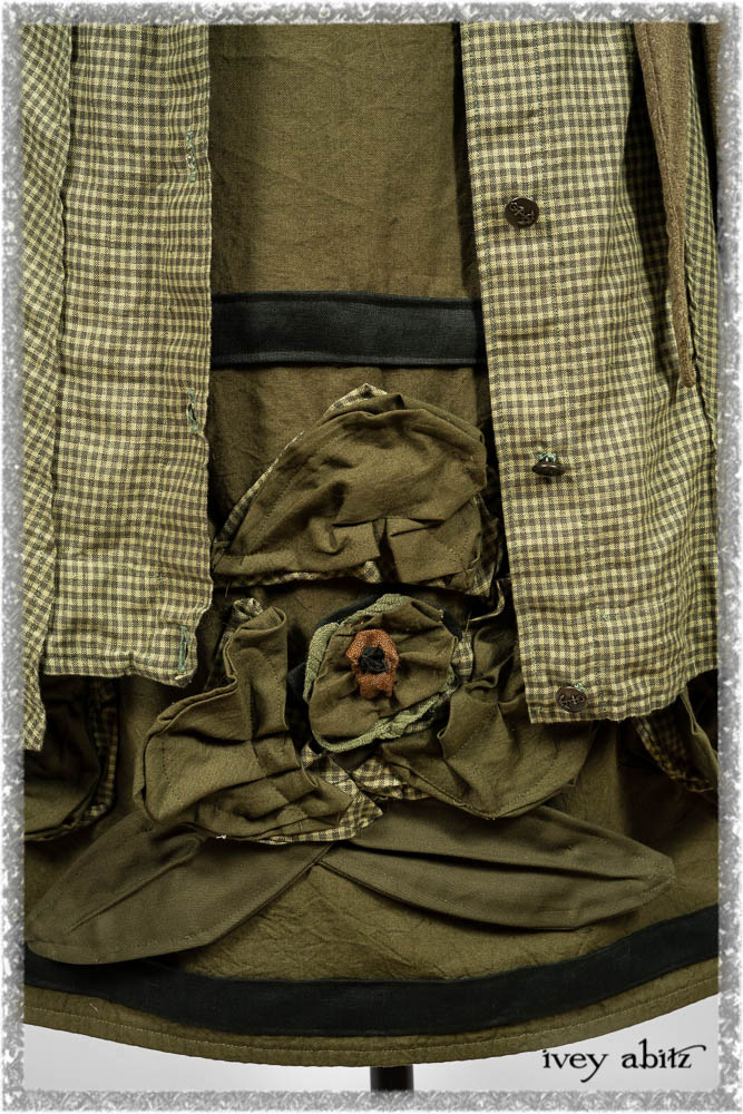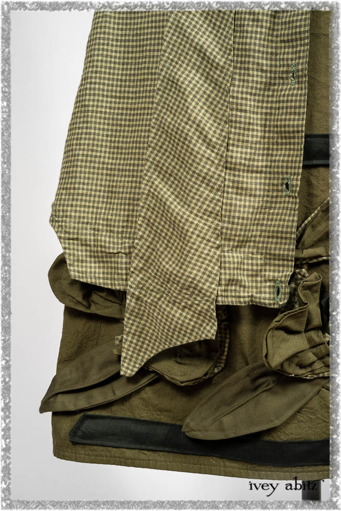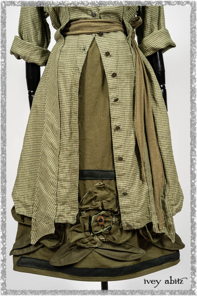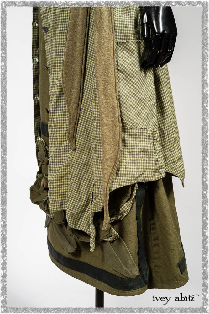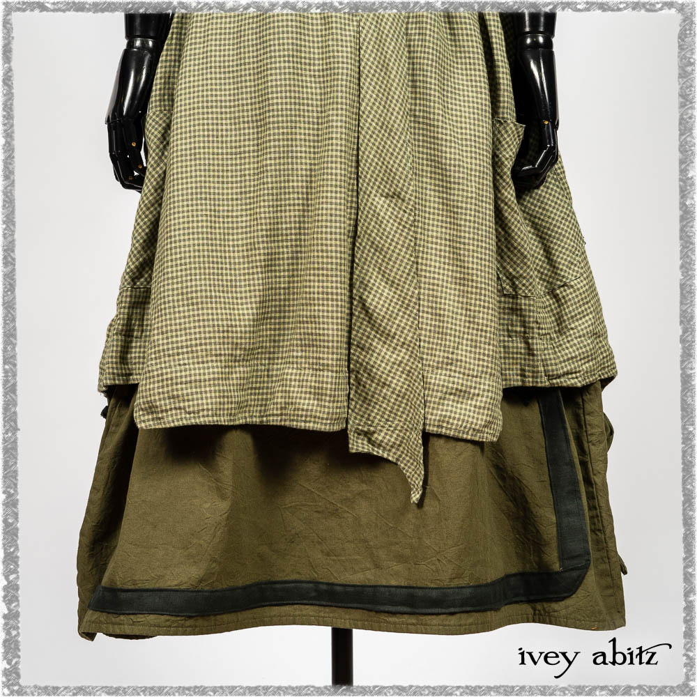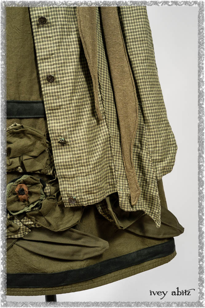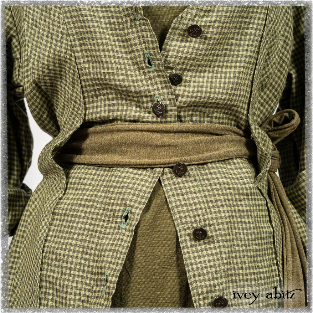 Vanetten Duster Coat in Seagrass Petite Check Linen; Saint Ans Sash in Woodlawn Melange Knit; Saint Ans Frock in Seagrass Crushed Cotton with mix of sculptural details created in rare weaves. Ivey Abitz bespoke clothing.