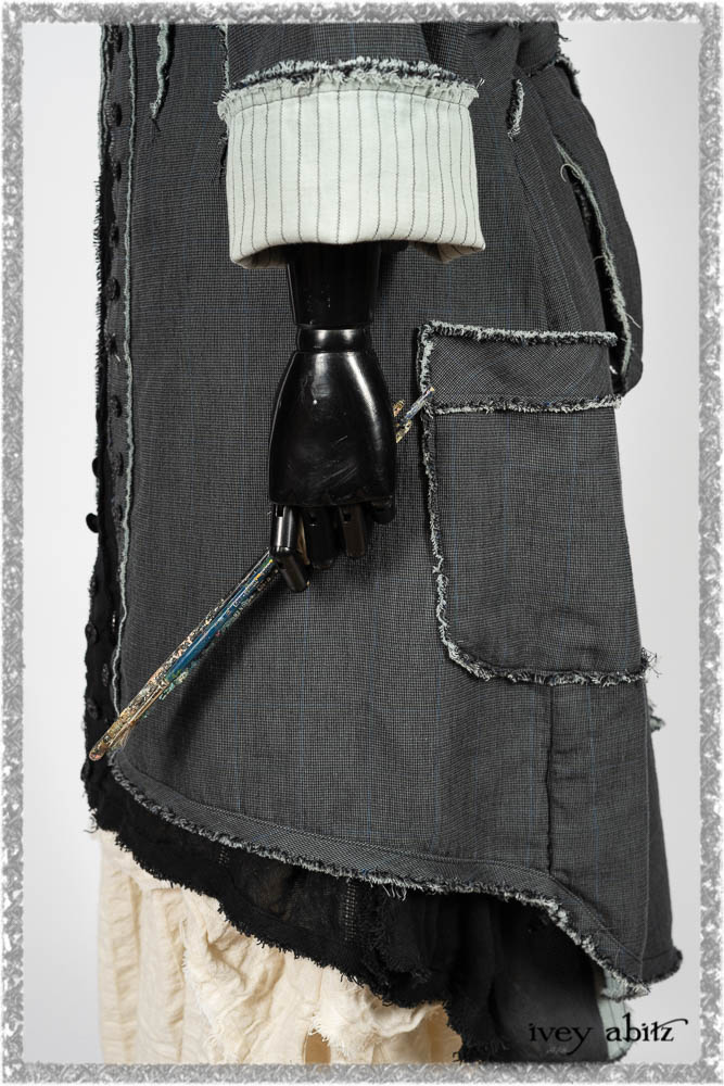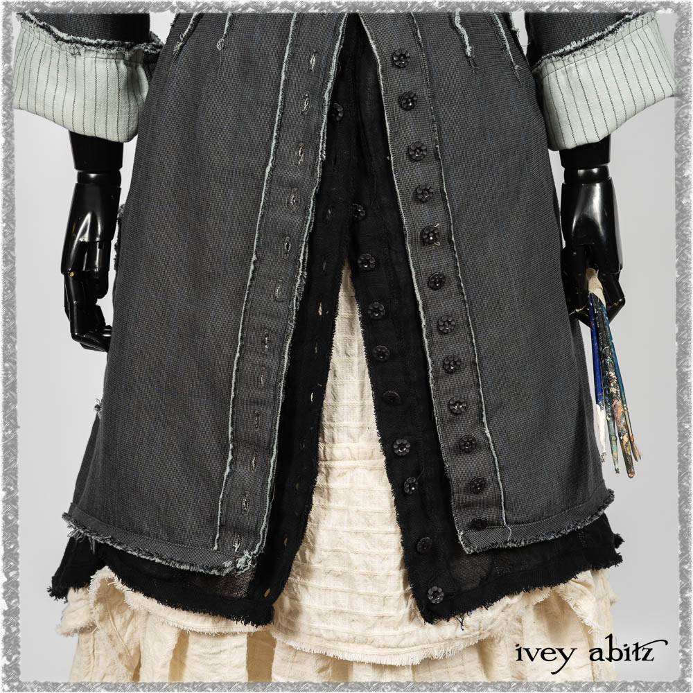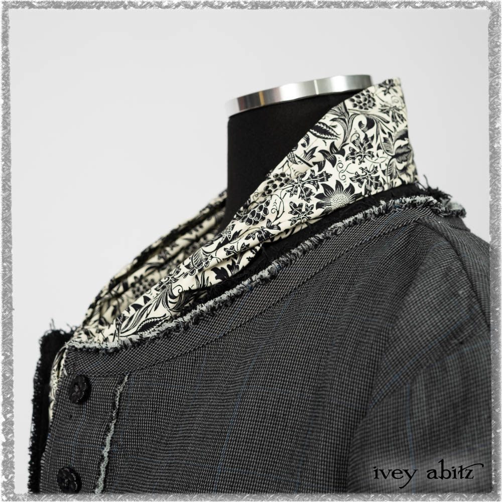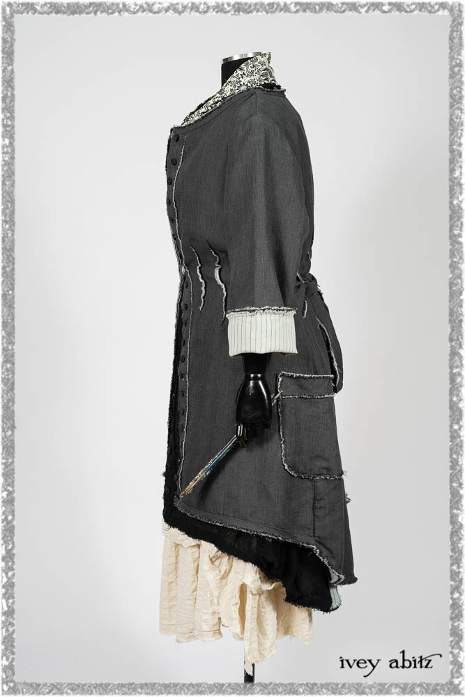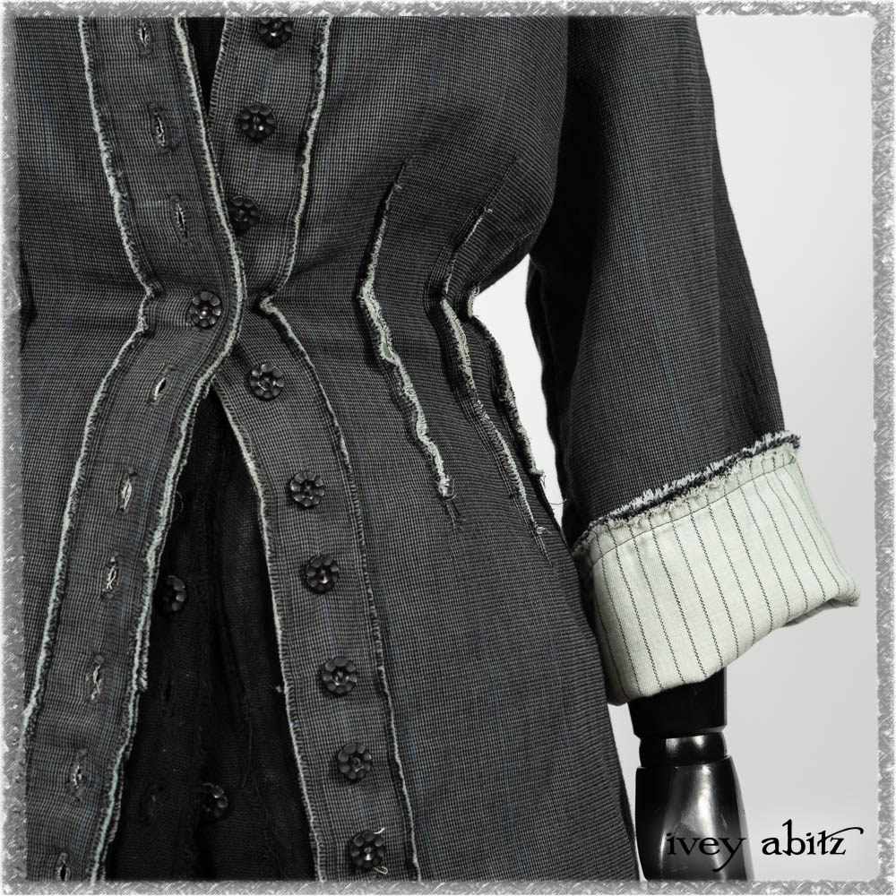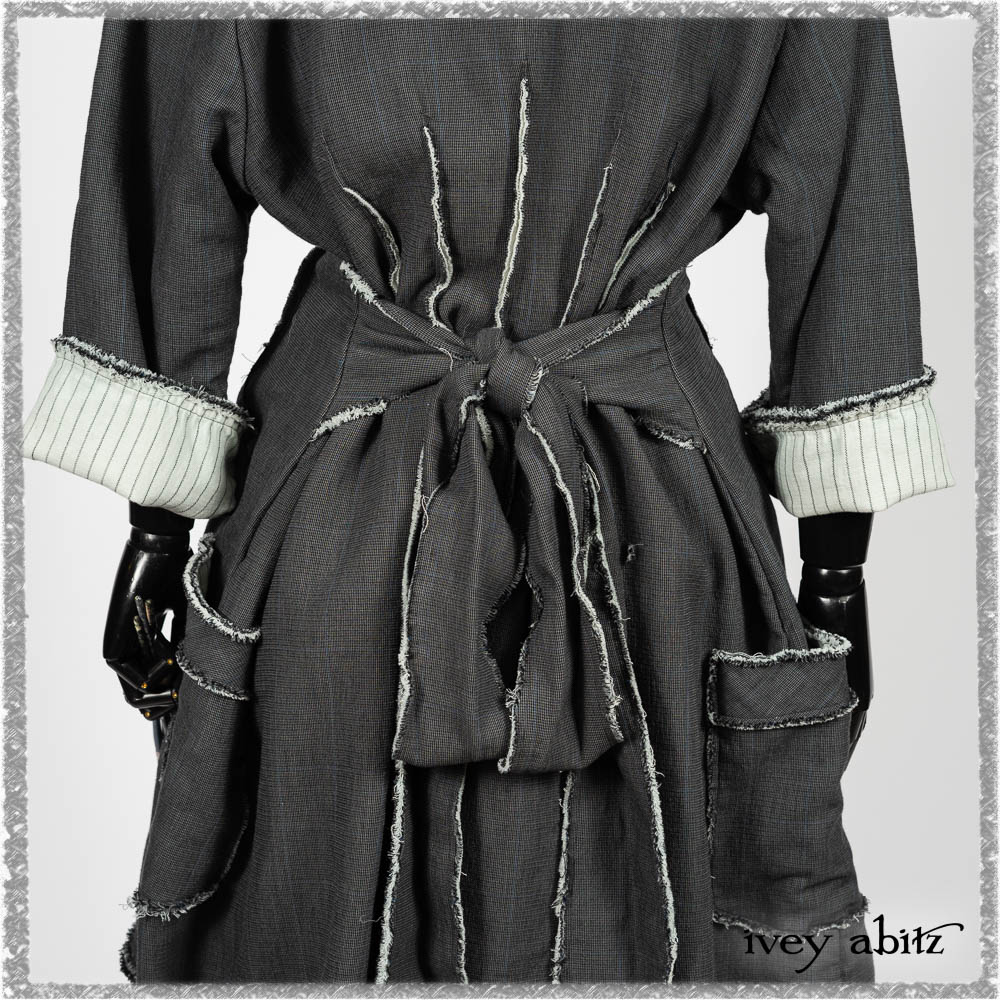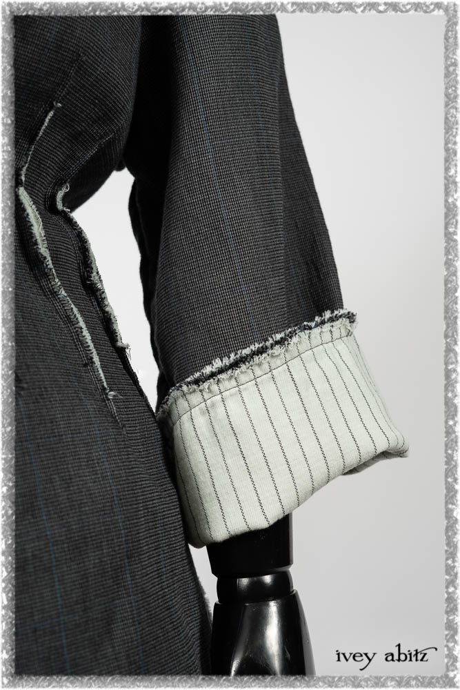 Trelawny Duster Coat in Estuary and Black Houndstooth on Pinstripe