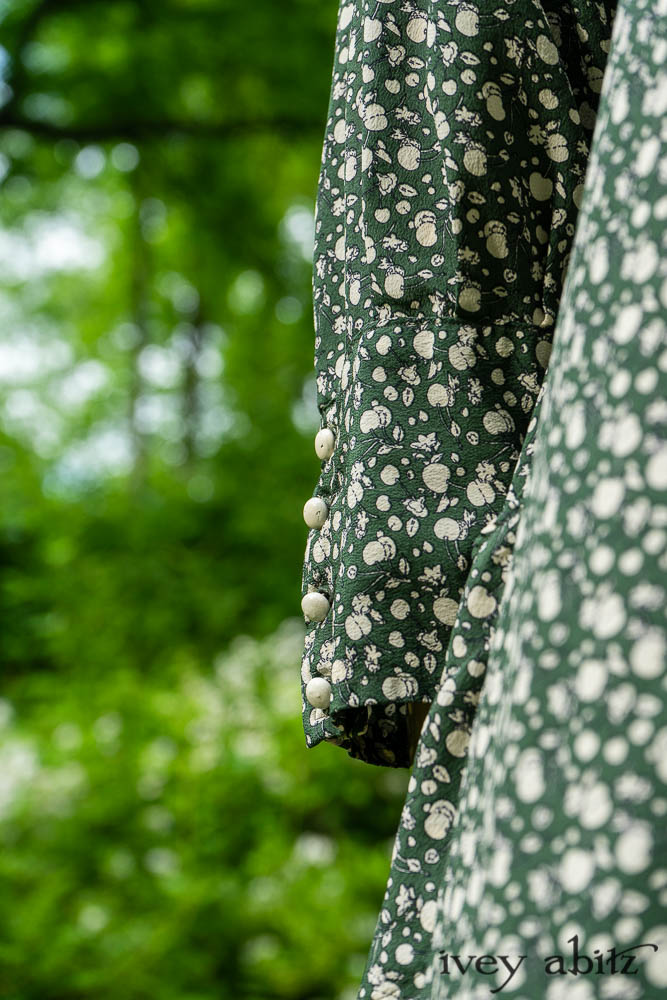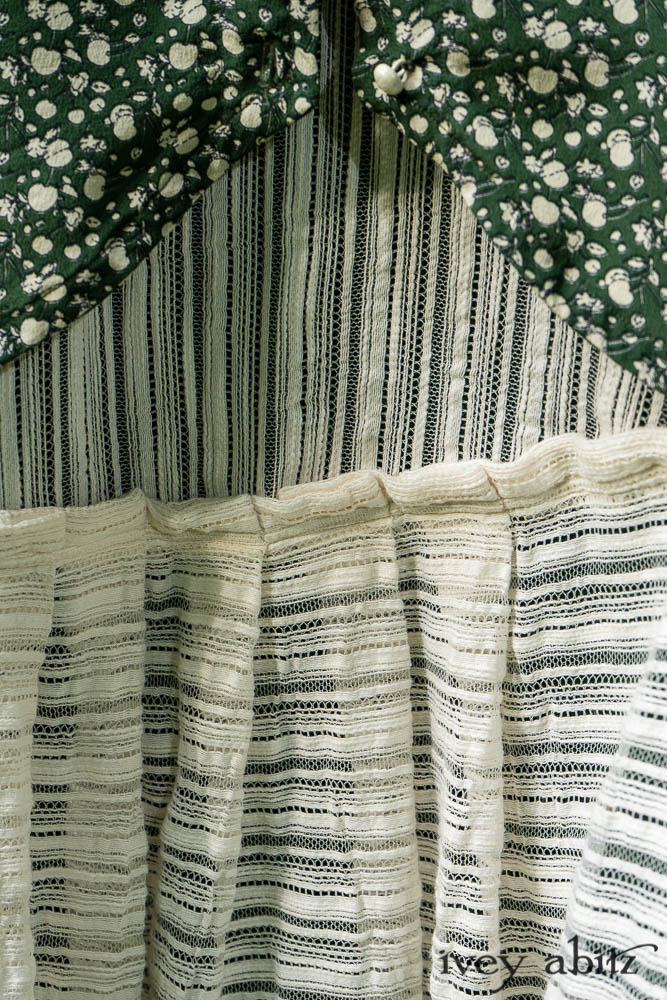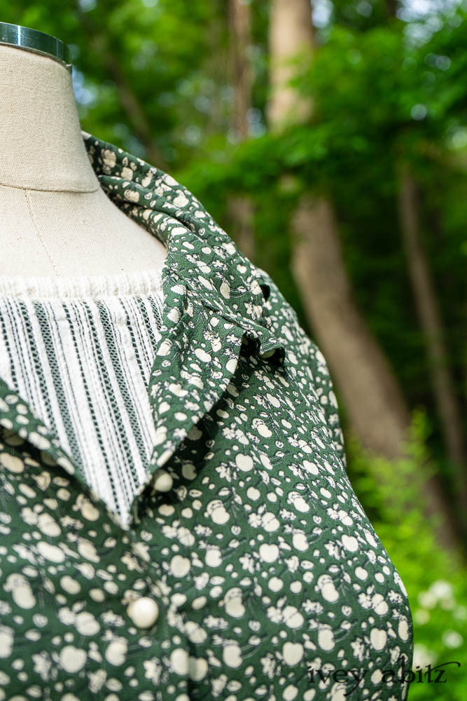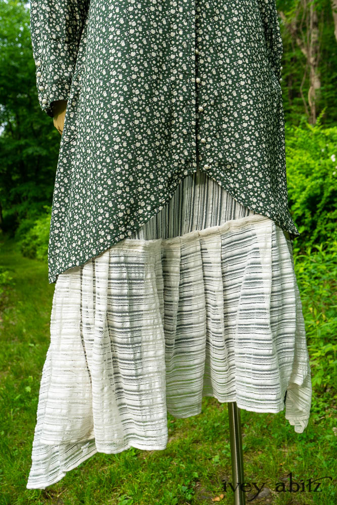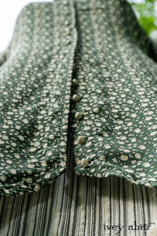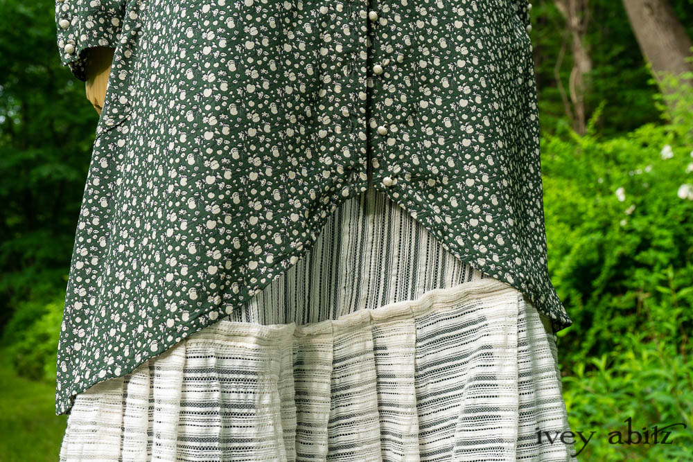• Truitt Shirt Jacket in Summer Harvest Washed Silk • Fairholme Frock in Gardenia Variegated Stripe Weave• Thatched Frock in Kale Crinkled Double Gauze. Bespoke clothing designed by Cynthia Ivey Abitz.