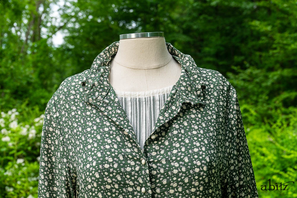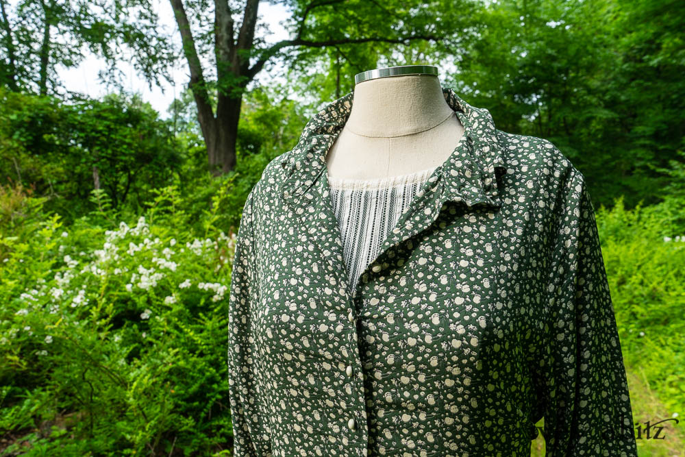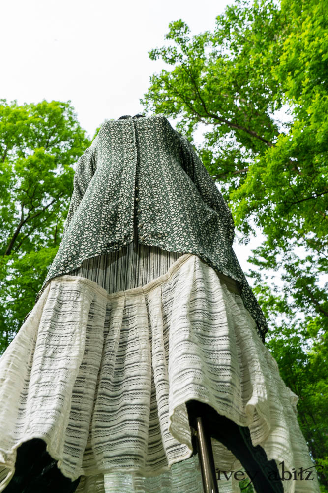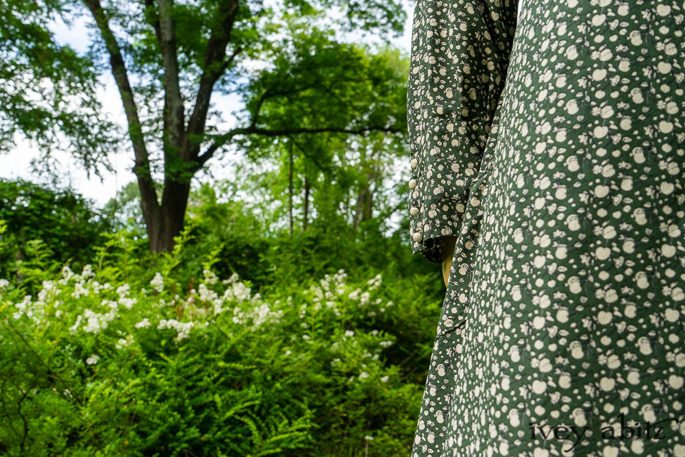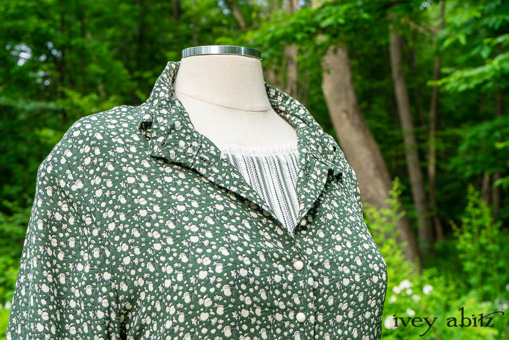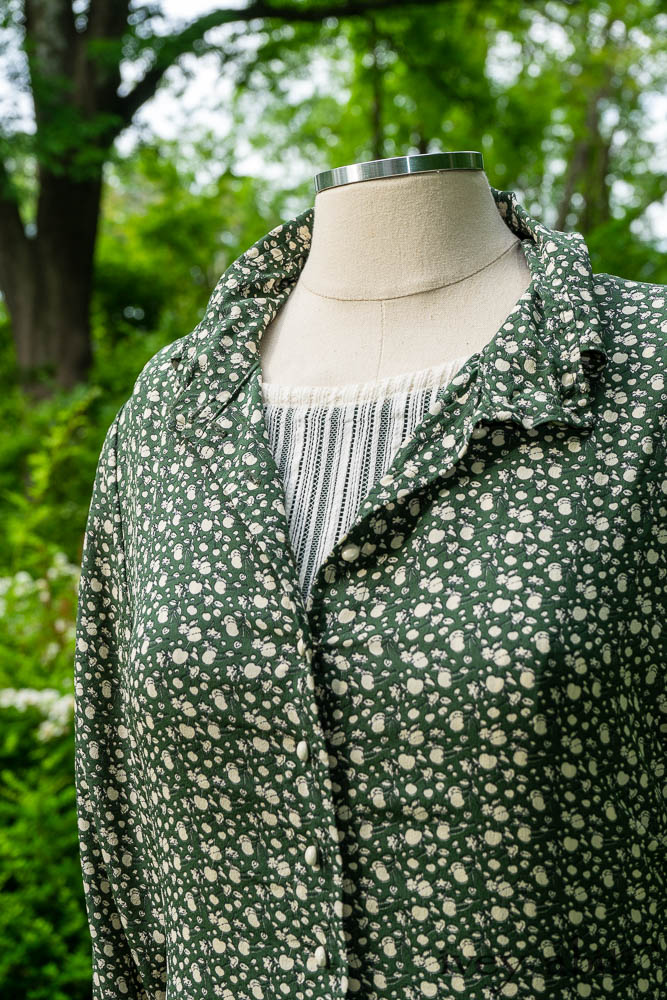 • Truitt Shirt Jacket in Summer Harvest Washed Silk • Fairholme Frock in Gardenia Variegated Stripe Weave• Thatched Frock in Kale Crinkled Double Gauze. Bespoke clothing designed by Cynthia Ivey Abitz.