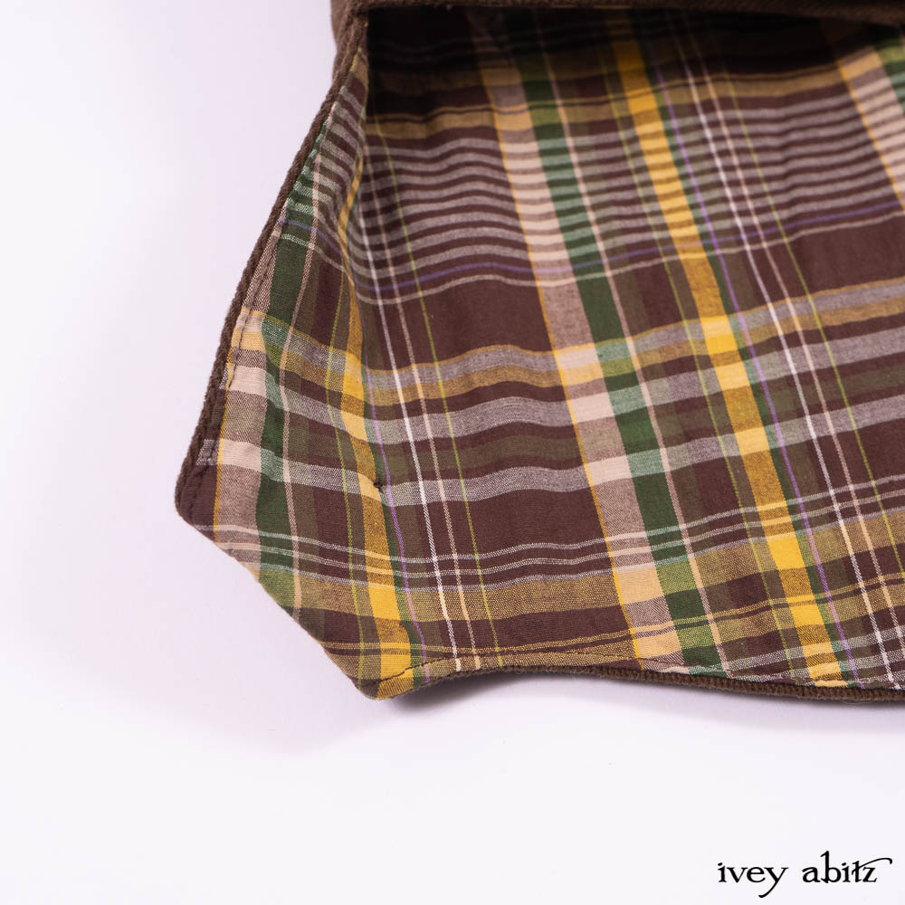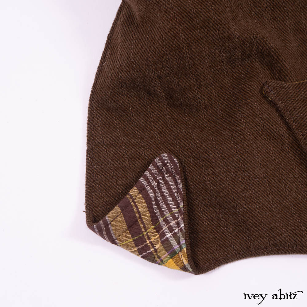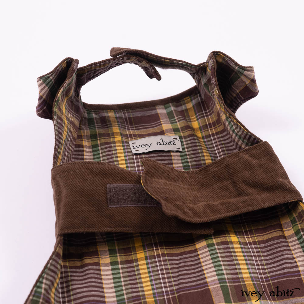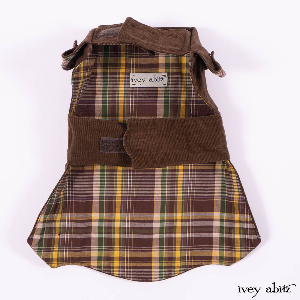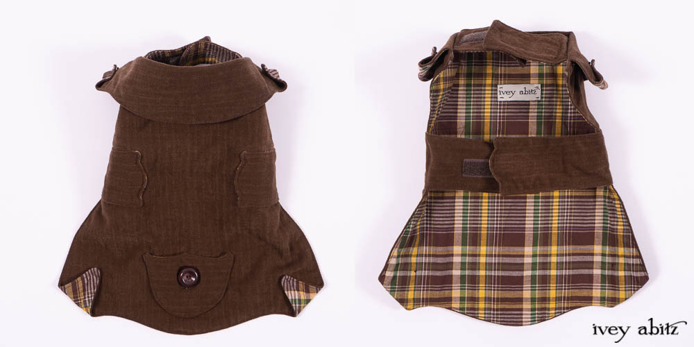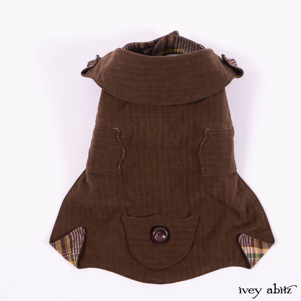 Our Camp Coat for canines is created with a very soft and sturdy cotton herringbone twill. It is fully lined with a playful cotton plaid from Italy. A functional pocket allows you to keep “poo bags” inside of it for easy access during a walk. The pocket is adorned with vintage wooden button from England with its original antique patina.