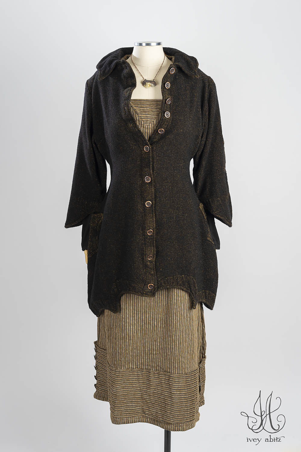 - The back ties cinch in the waist and easily adjust the fit and drape. To wear with a straighter silhouette, simply request to have the Chittister made without ties.