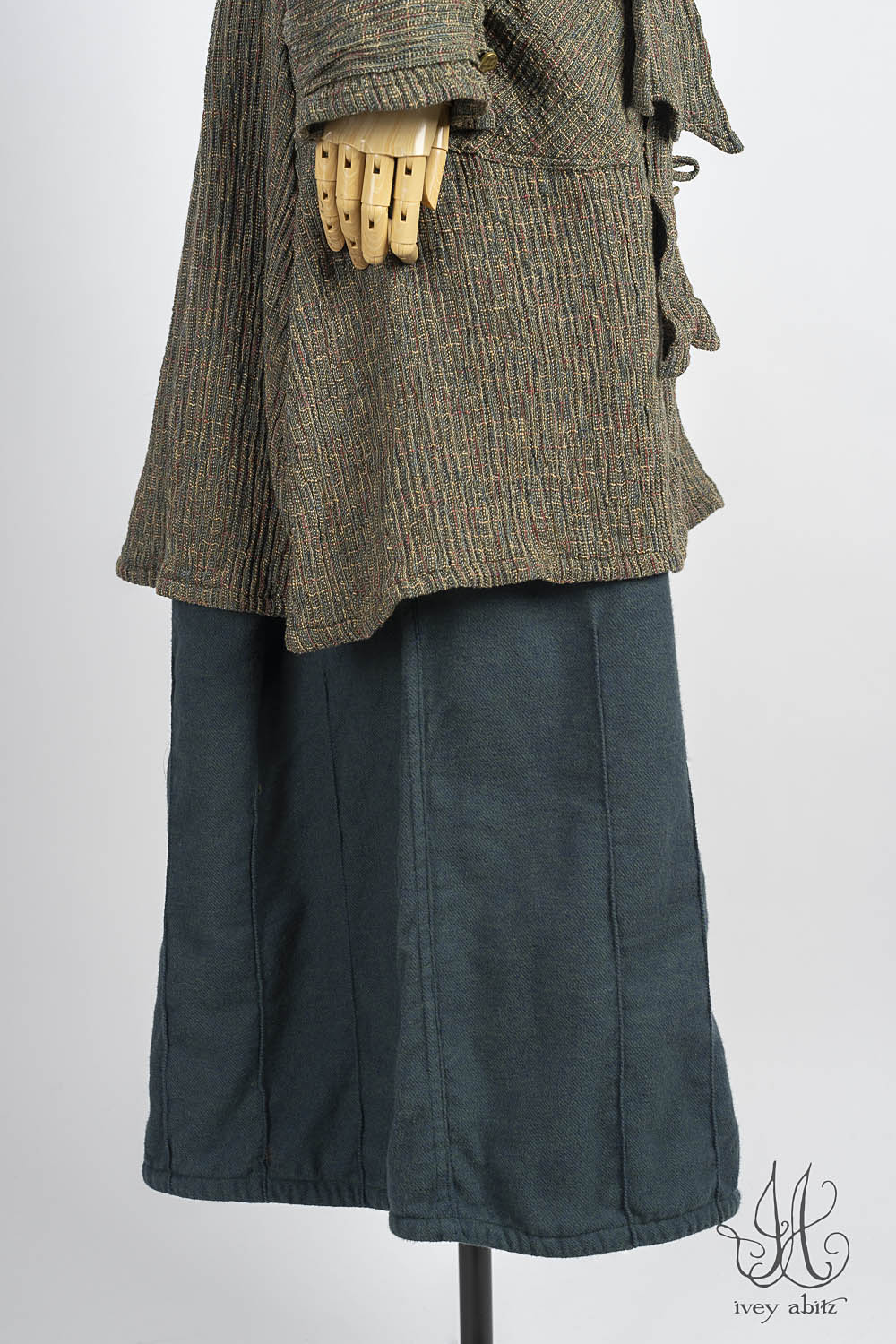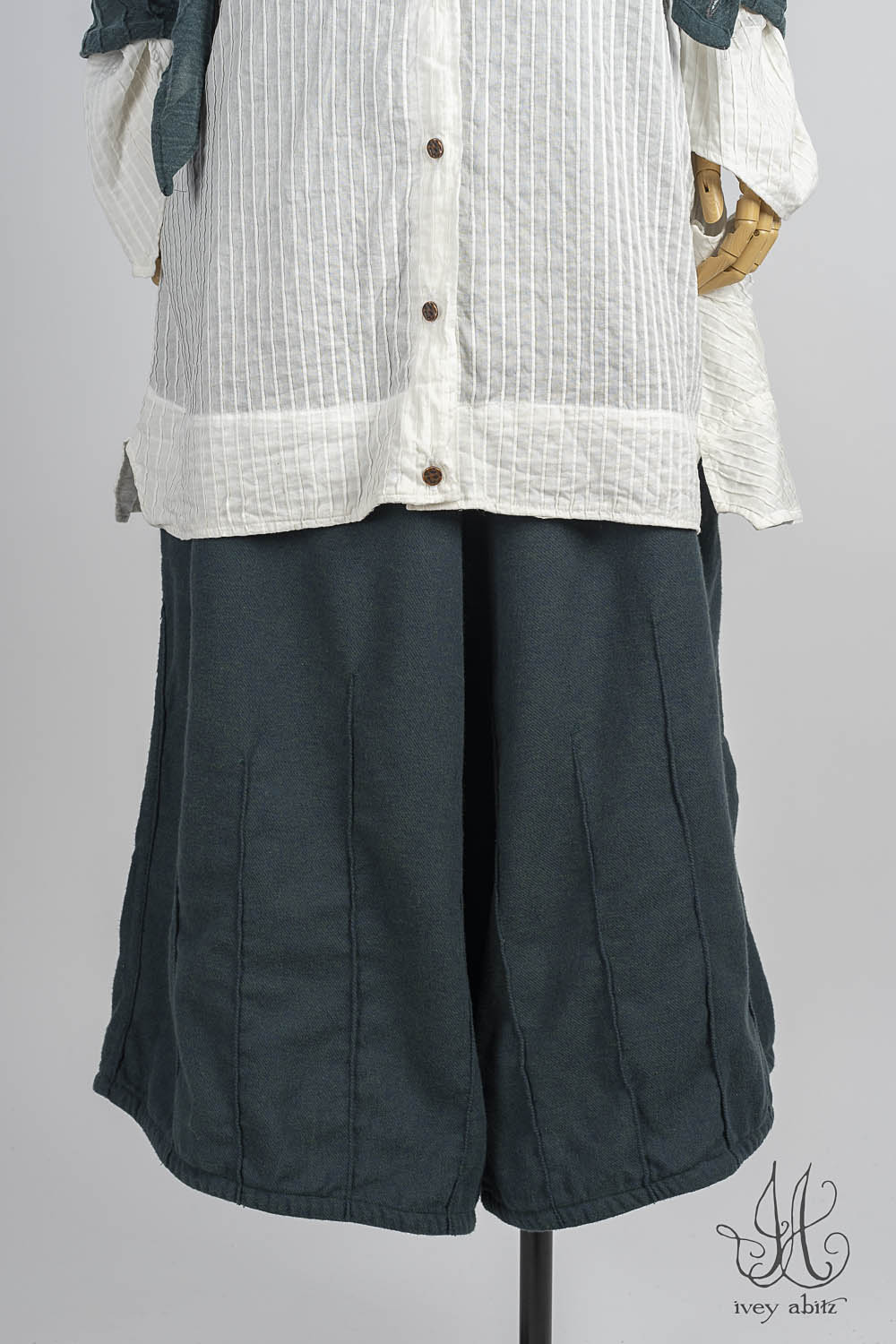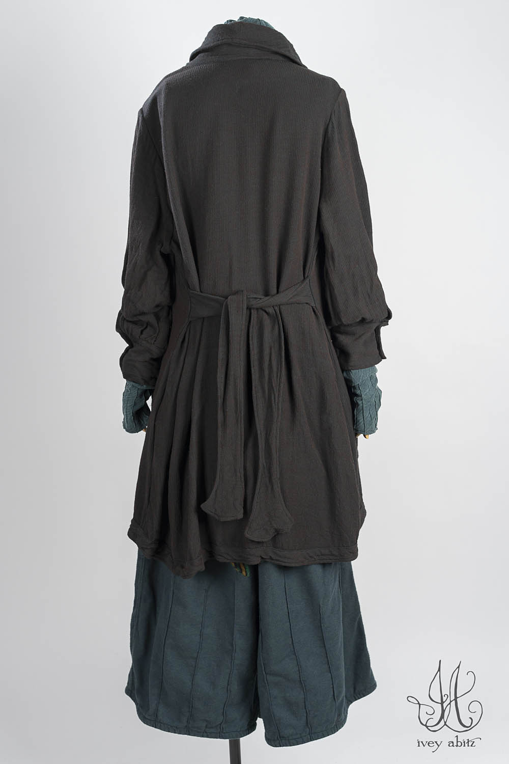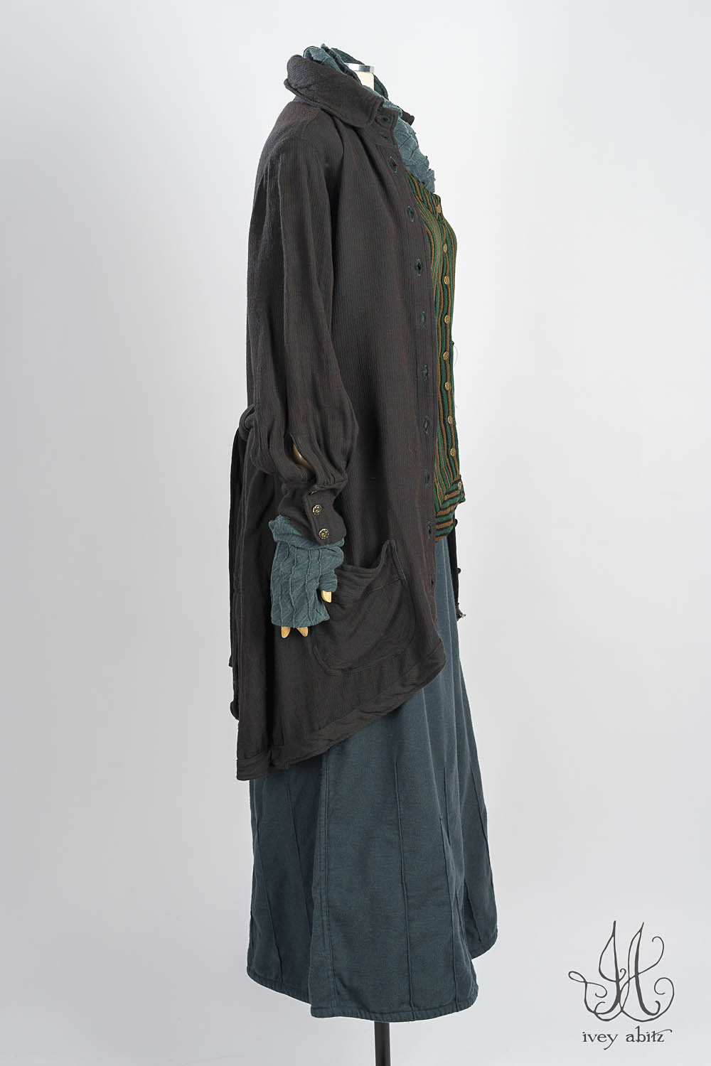 Pairing with the Mercer Frock and Mercer Cardigan are the obvious choices. But the Mercer makes friends with every Ivey Abitz design. Wear them with any Ivey Abitz shirt, under any shorter frock, and under any duster coat.