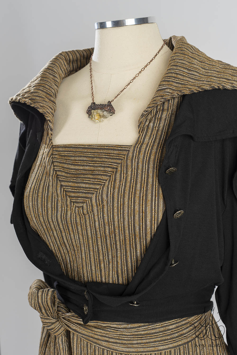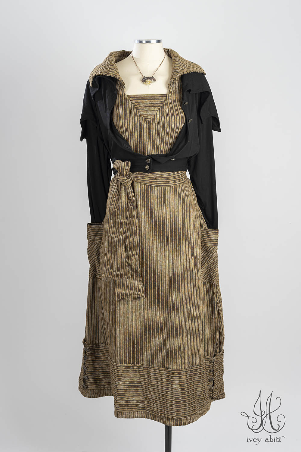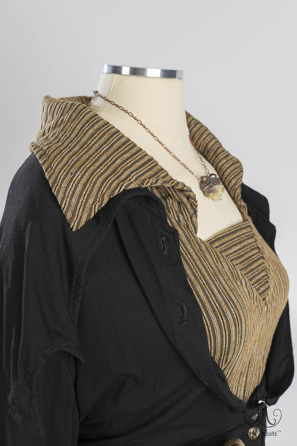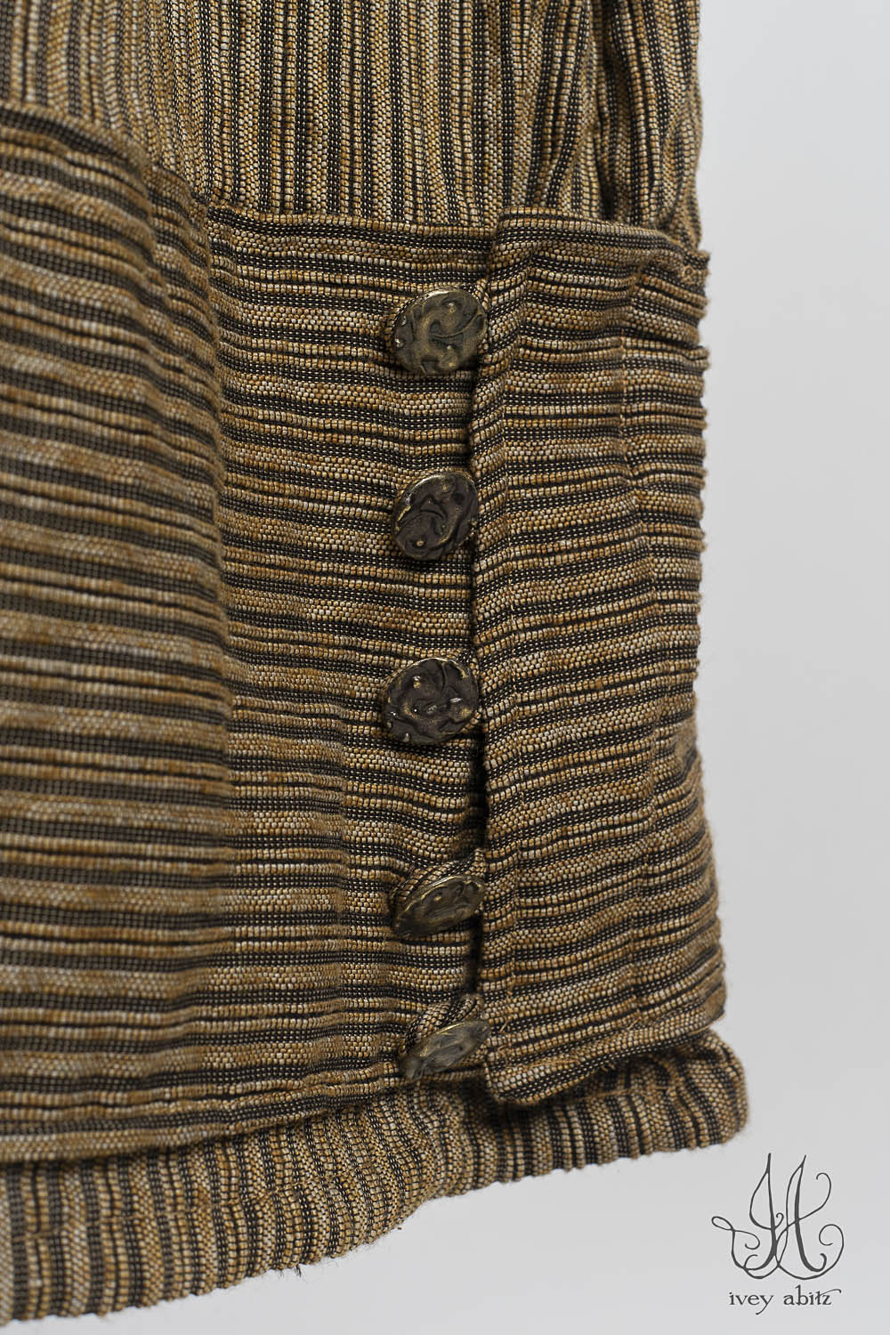 Viv’s collar and bottom hem detail complements the Pierrepont collection. Viv used to live near Pierrepont, so it makes perfect sense that these collections complement one another. We also like the Viv mixed in with our Eugenia Jacket, Elliot Jacket, Baedeker designs, and the Baudelaire Duster Coat.