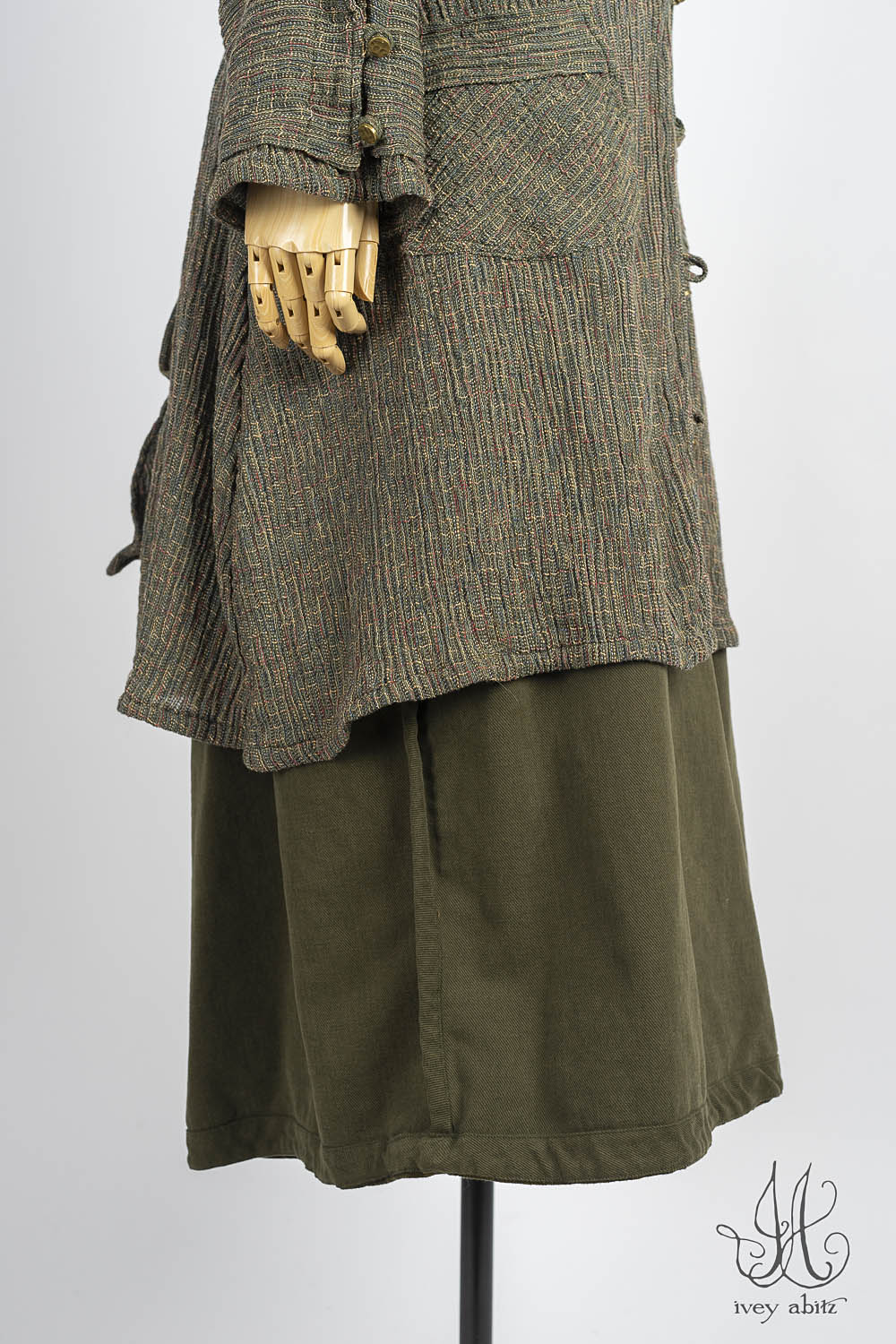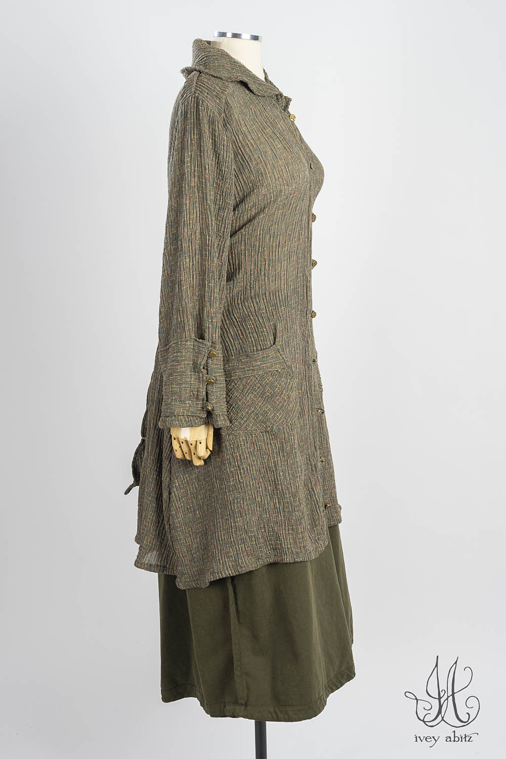 The Wright Shirt can mix and match with pretty much any Ivey Abitz design. The Wright works especially well with frocks and duster coats that have a straight bottom hem, as opposed to an undulating one. We love it over the Wright Frock, Viv Trousers, Beacon Frock, Garrison Frock… if you see a pairing you love, go with it. This speaks of your individuality, and you’ll be sure to wear it all the time!