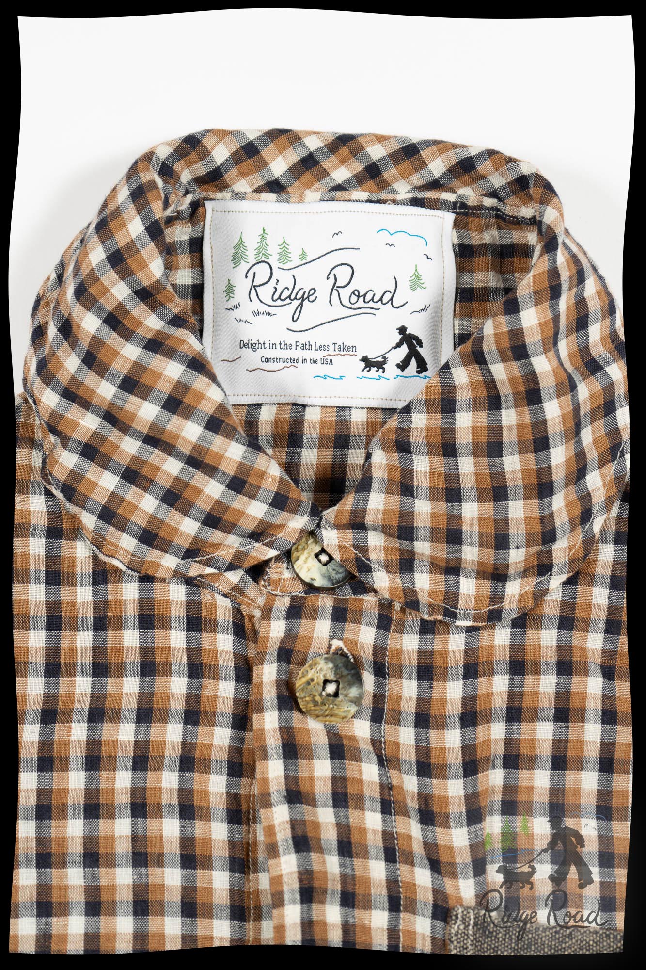 5.) The shirt features the embroidered Ridge Road logo. May wearing it always remind you to take delight in the path less traveled.