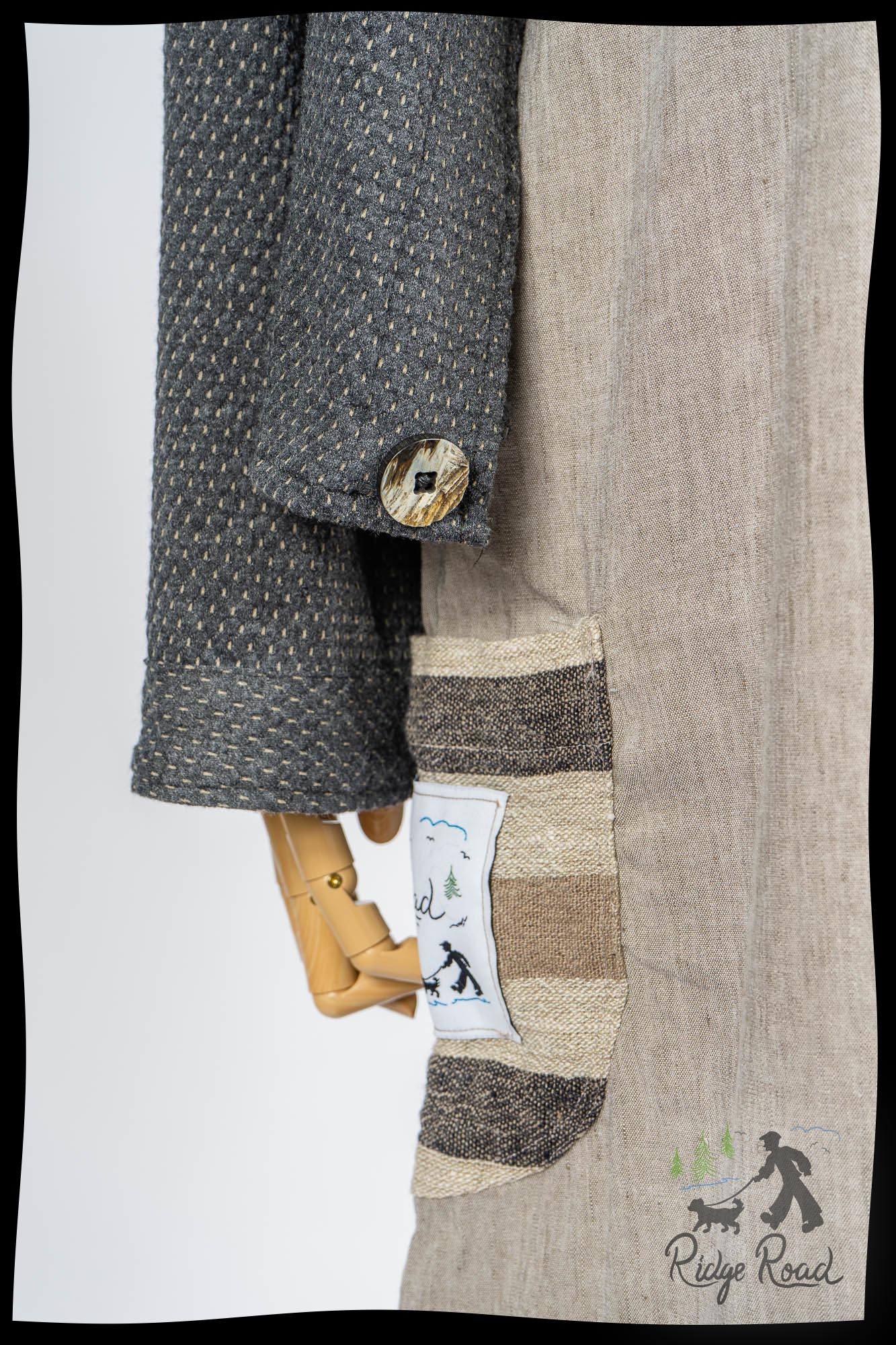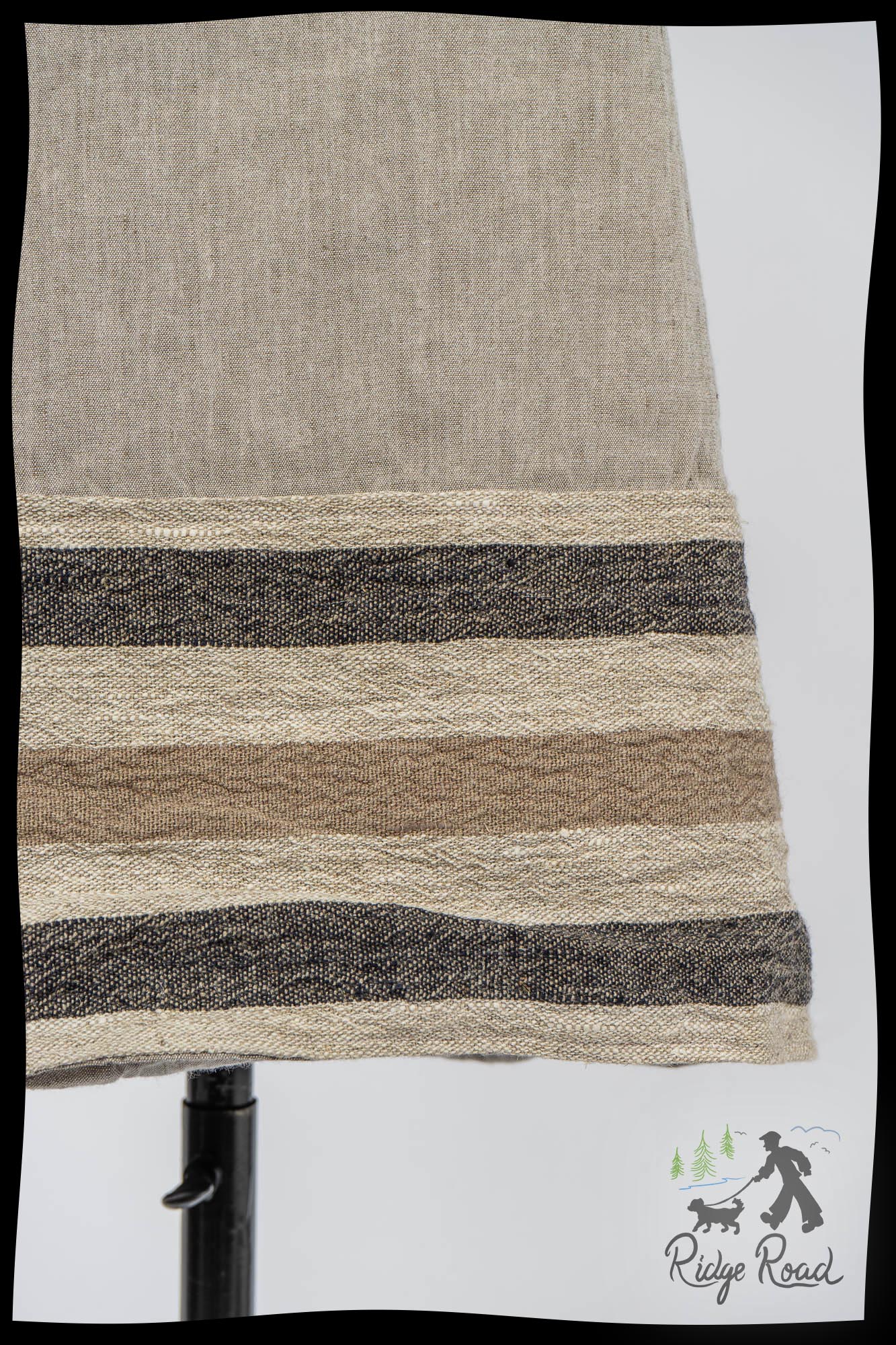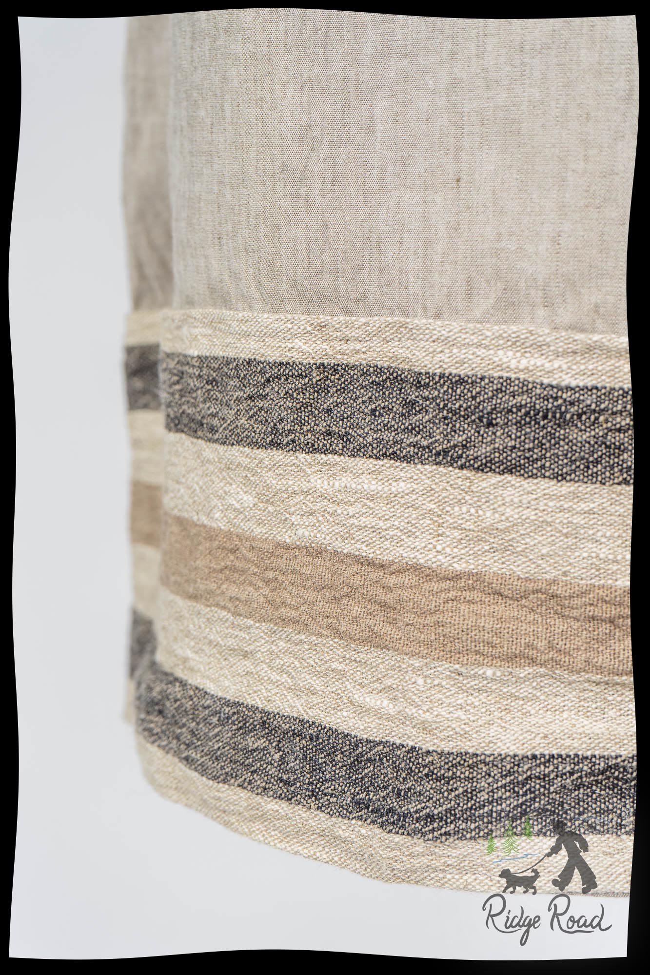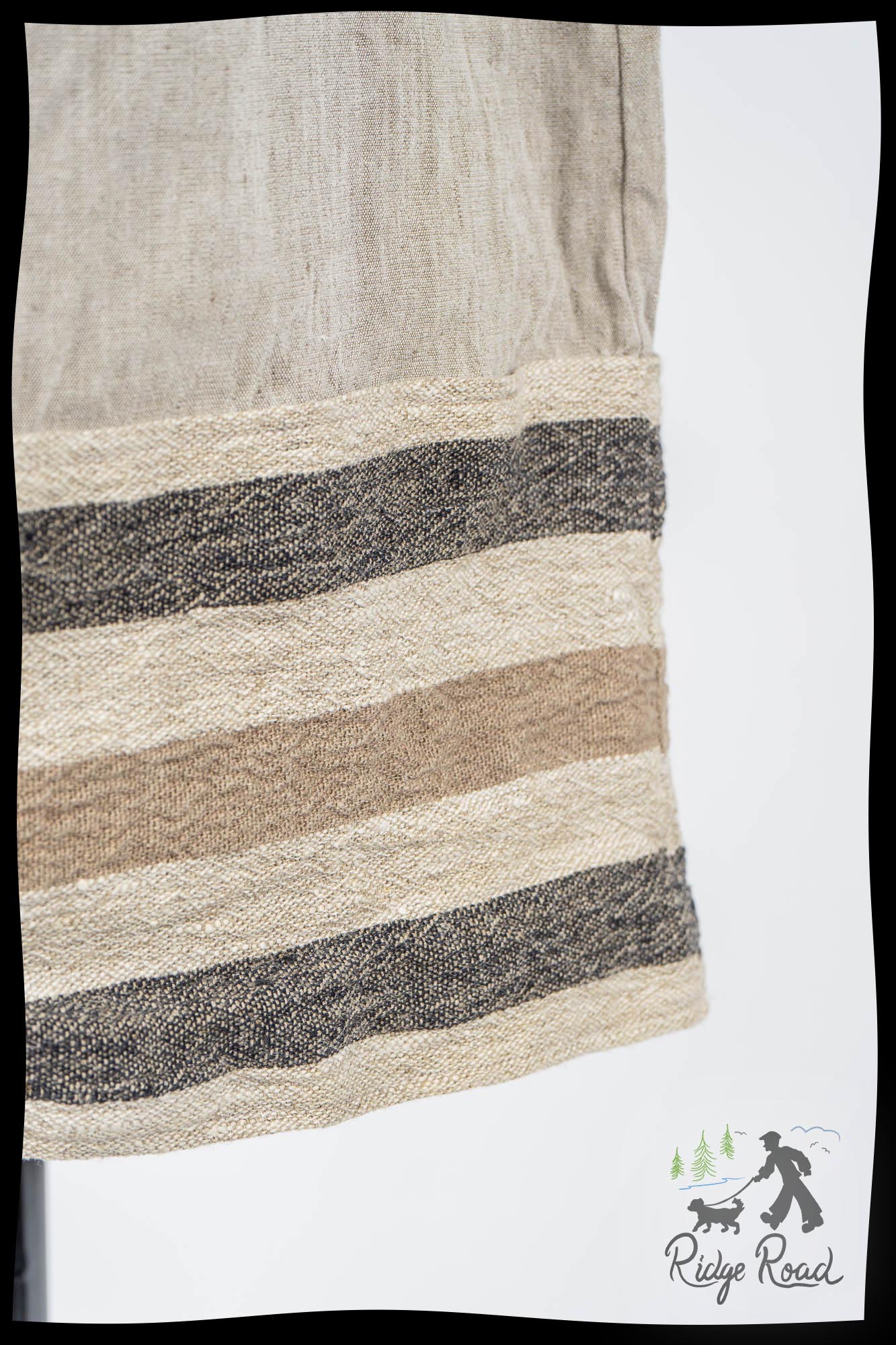 4.) All season stretch linen and viscose weave has a nice give in it without being a knit weave. Opaque and soft. Easy wear and care. Features signature rugged and refined stripe weave with black and natural hues in the pockets.Â
