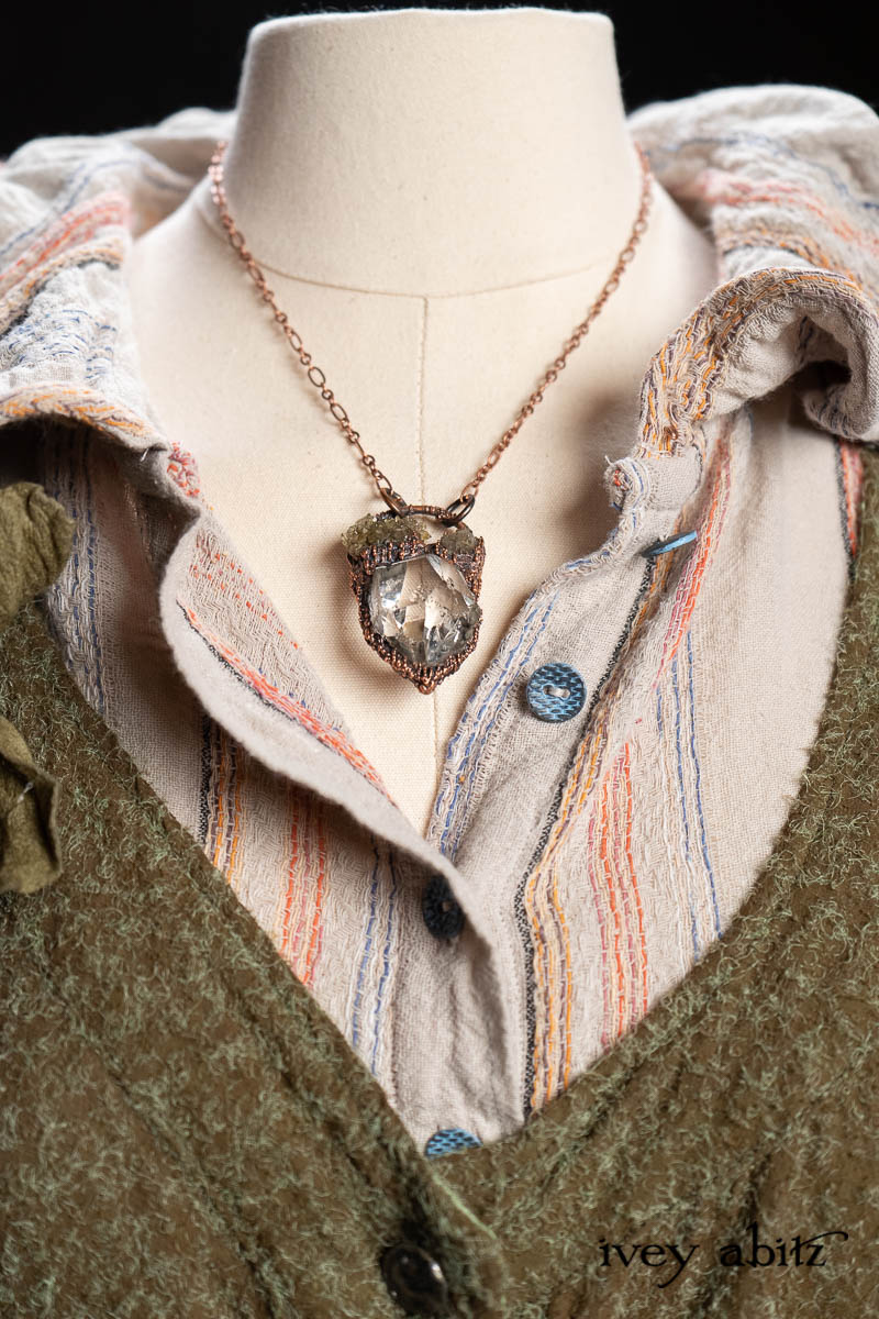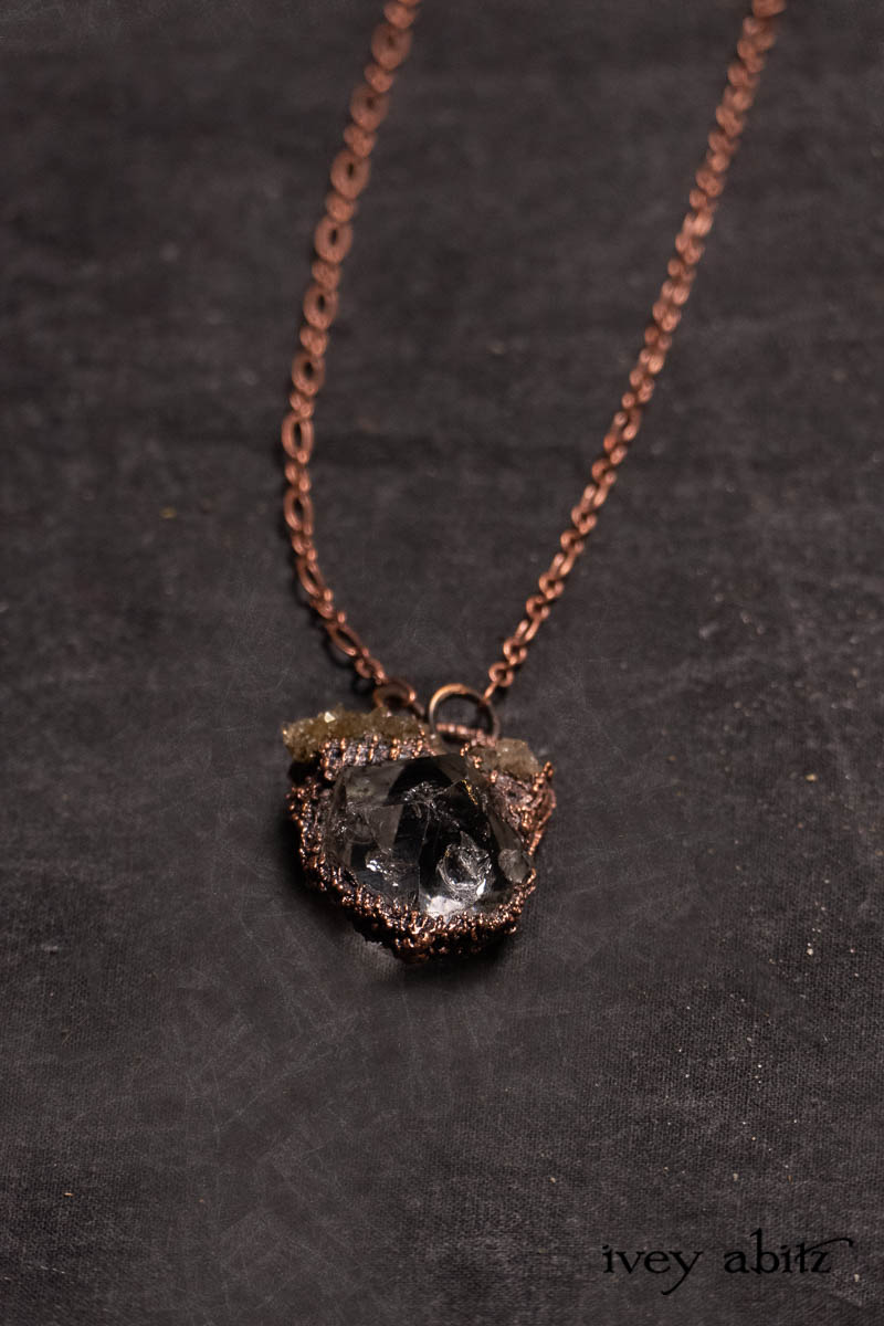 We are collaborating with a wonderfully kind and talented jewelry artist named Dori who mines for the Herkimer Diamonds herself with a sledge hammer and chisel. Then, she makes them into necklaces using a rustic copper setting and chain.
