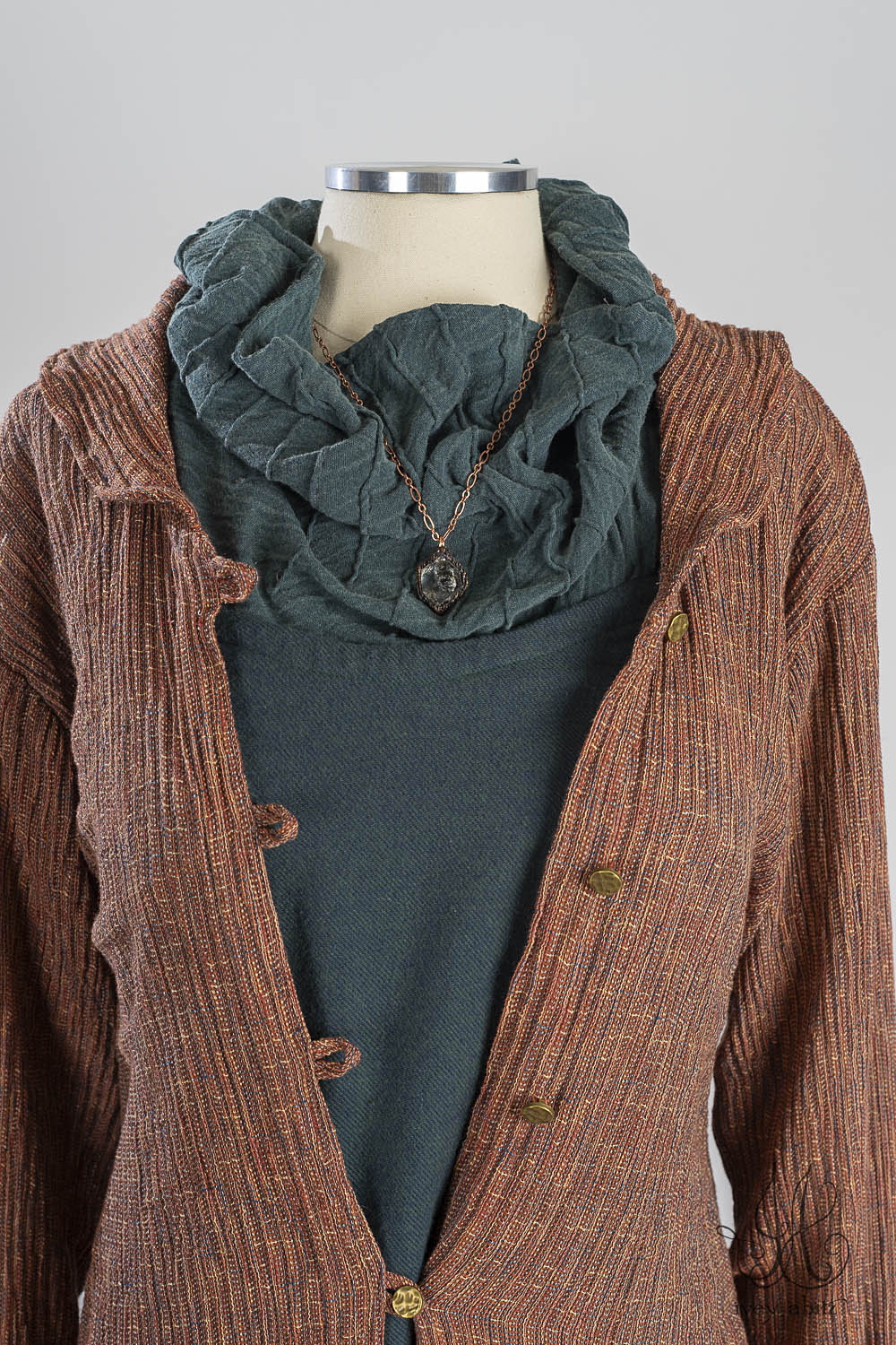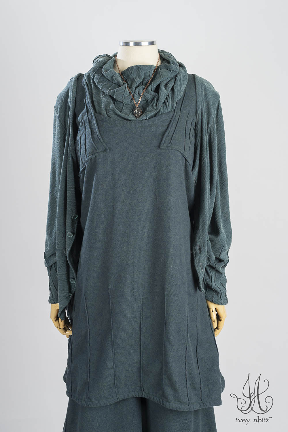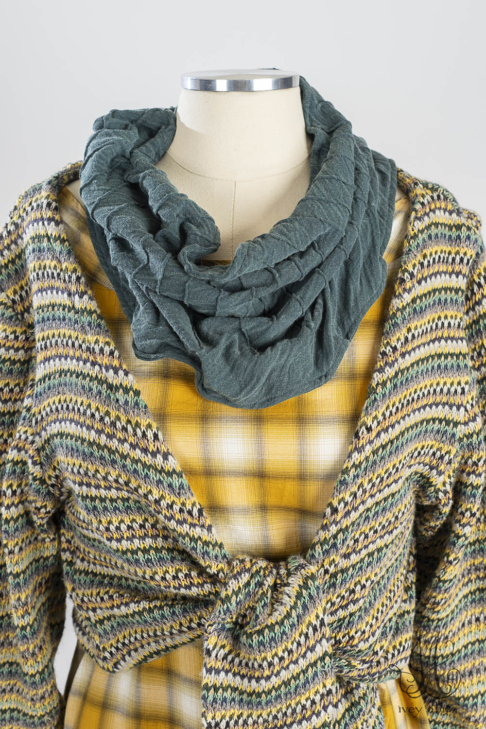 Double layered in our fabulous new knits, all woven in the United States. The outer layer of the neck wrap dons the handmade pin tucks that are quintessentially Ivey Abitz. The interior layer is made with our new smooth and soft knit.