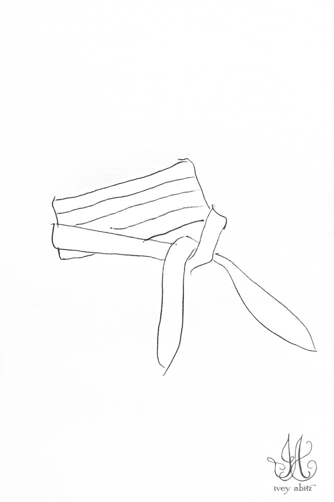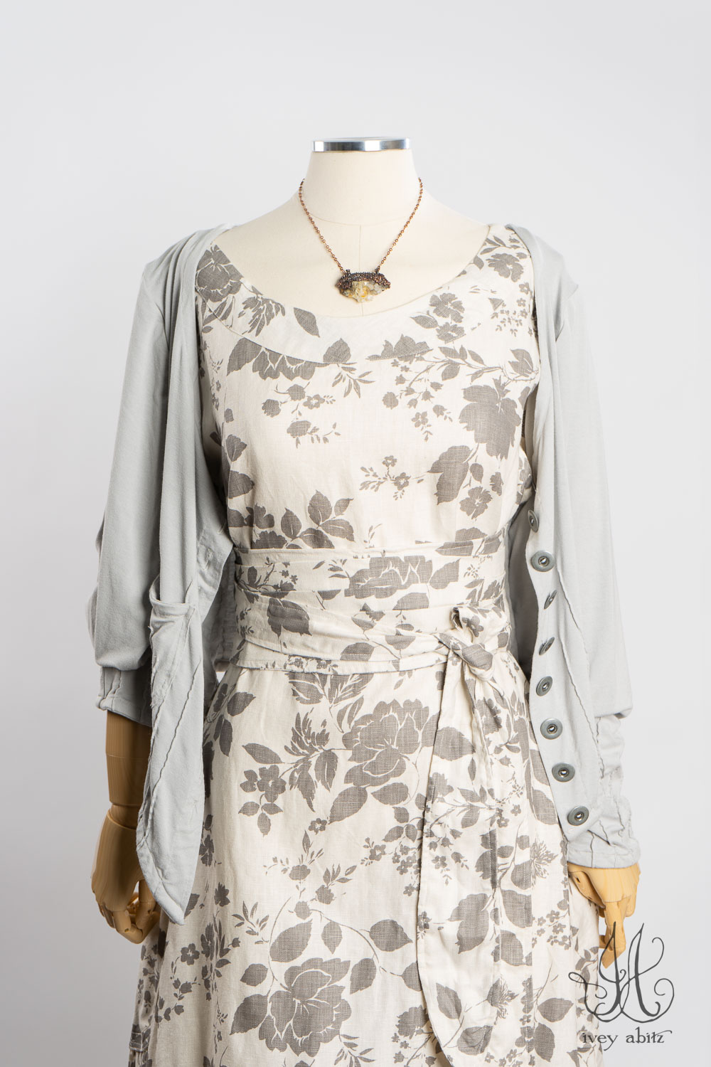 Three folds run across the front of the band, echoing the folded bands the don the front and back of the Ottway Frock.