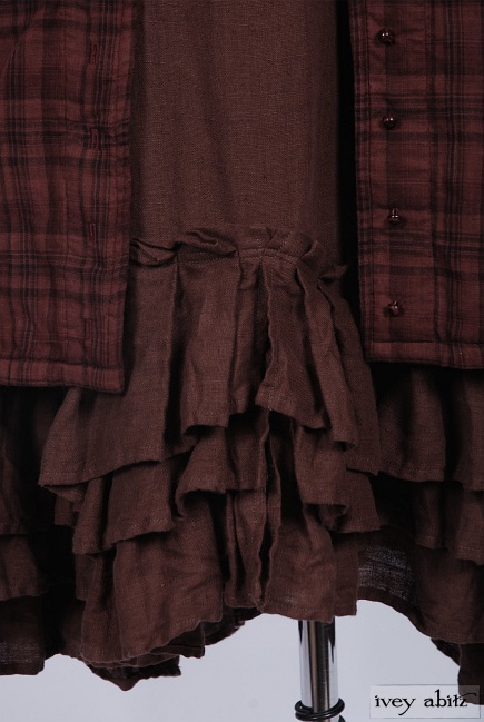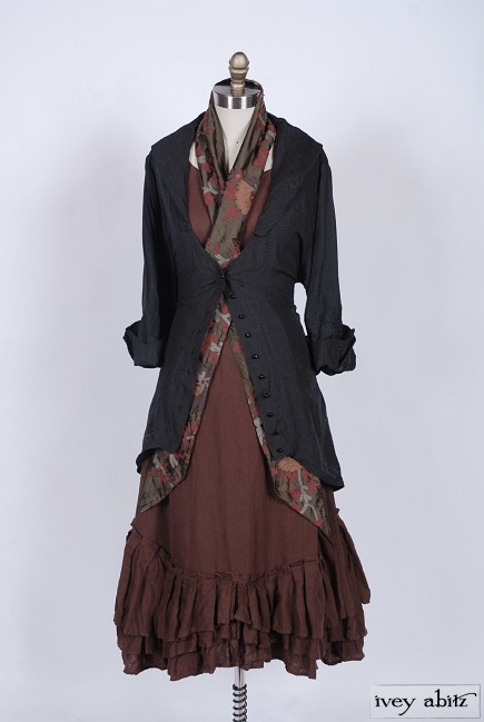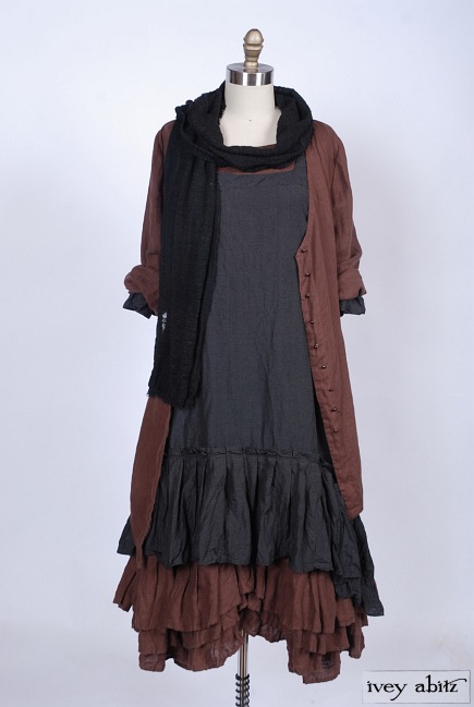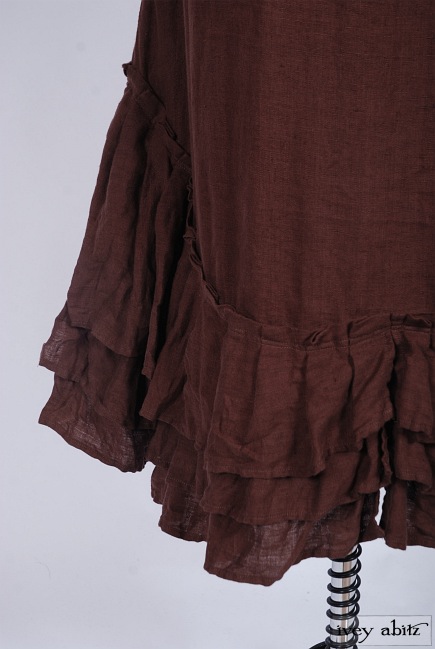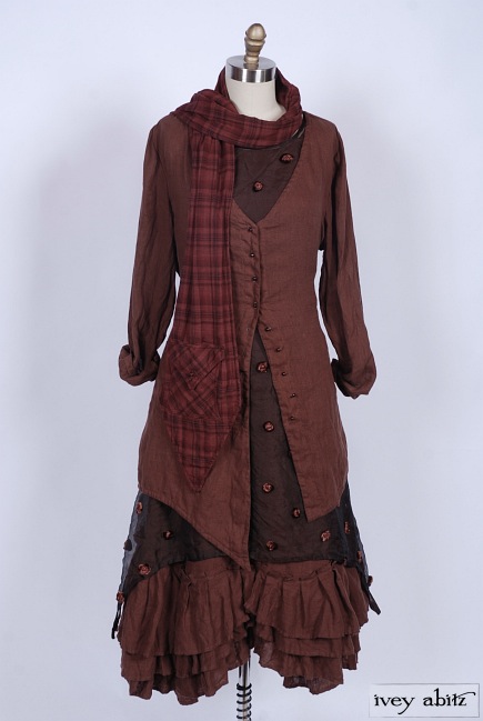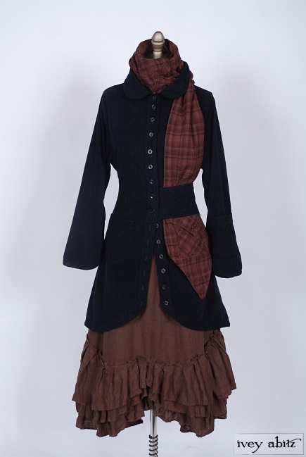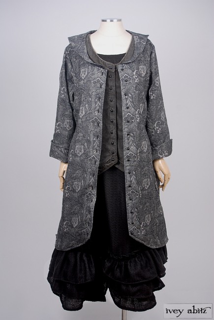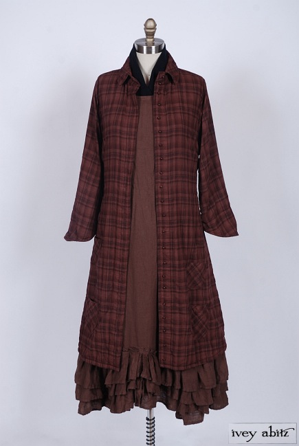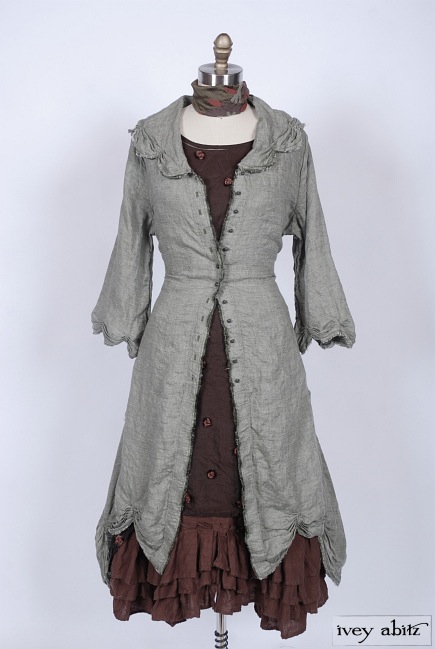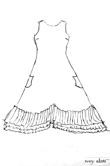 - Three layers of curved pleating is intentionally whimsical. Move about with ease and feel quite lovely whilst living everyday life. The bottom hem of the skirting curves up slightly at the center on the front and back of the frock. The curve in the pleating of a frock complements the bottom hem of the Anabel Coat Dress, as well as other coat dresses, shirt jackets, and duster coats in the Ivey Abitz collection.