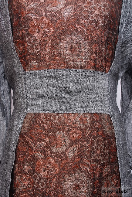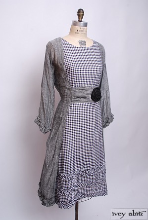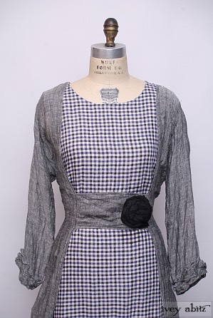 - The tab across the front is sewn in securely so that the dress can be cinched in at the waist at the small of the back.