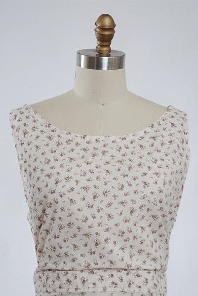 A cousin to the Alouette Frock, the Cozette Frock is somewhat similar. The Cozette Frock is a good choice if more gentle gathers, a rolled edge on the neckline, and a rolled edge along the bottom hem pleating is desired (the Aloutte has longer gathers and raw edges on neckline and bottom pleating).