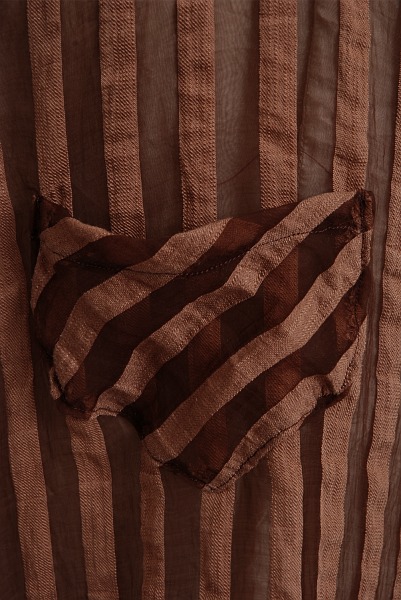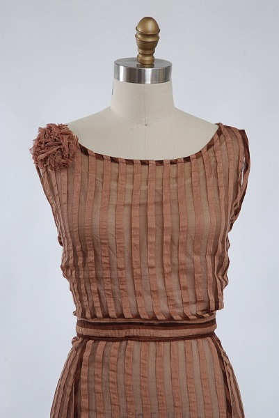 Unique gathering and pleating combination varies slightly from frock to frock, depending upon thickness and drape of fabric.