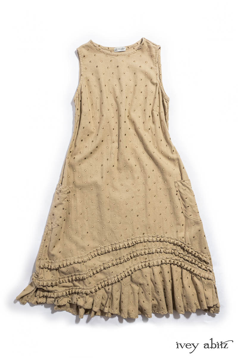 Featured Windrush Frock in Sandstone Embroidered Dot Linen