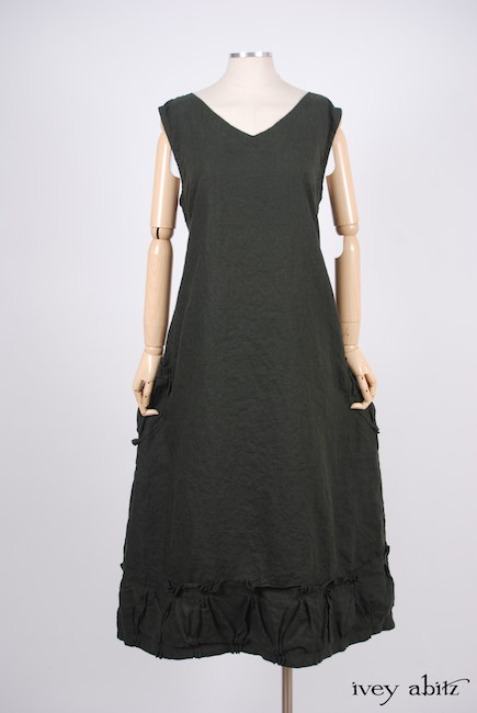 - The clever folds in the bottom hem of the frock create an intricate repetition on the front and back. The folds are echoed in the side seam pockets as well.
