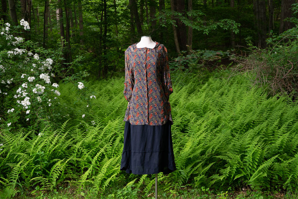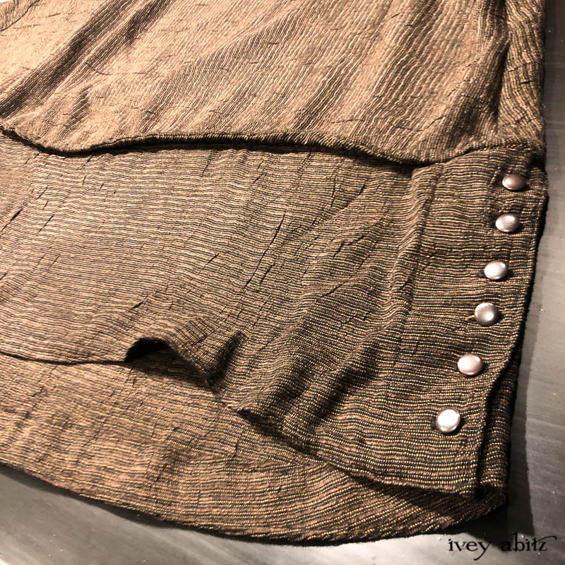- A clever row of rare antique buttons adorn the side bottom hem of the frock. They can be buttoned or unbuttoned. The antique buttons will vary and complement the fabrics that you choose for your Harrisons.