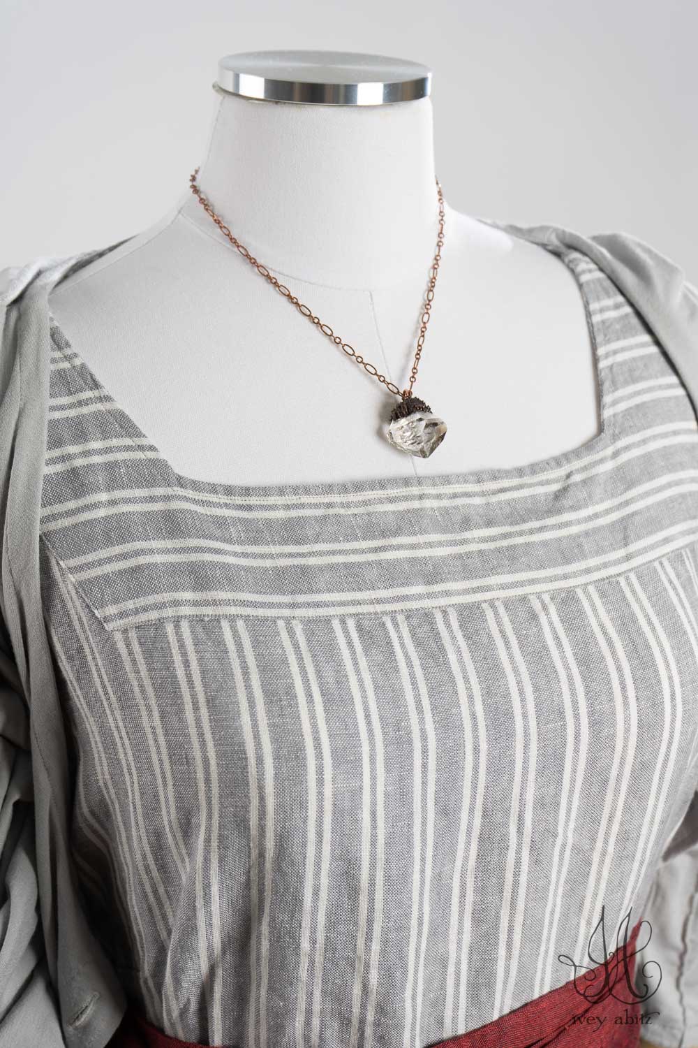The Merrily We Go Along Frock can mix and match with pretty much any Ivey Abitz design. The Merrily works especially well with shirts and duster coats that have a straight bottom hem, as opposed to an undulating one.