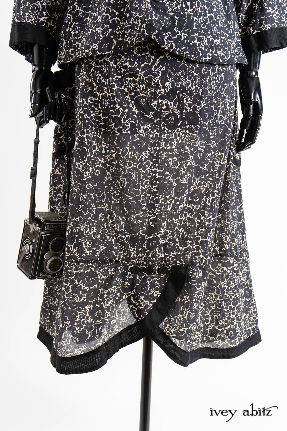 The optional side ties are made in our Post Modern Petite Stripe Voile and are a bit wider than our diminutively narrow side ties. They are intentionally bolder to complement the featured bands on the front and back of the frock.