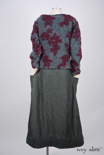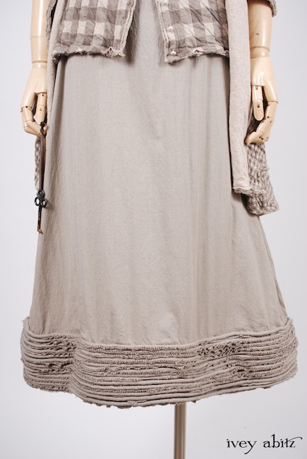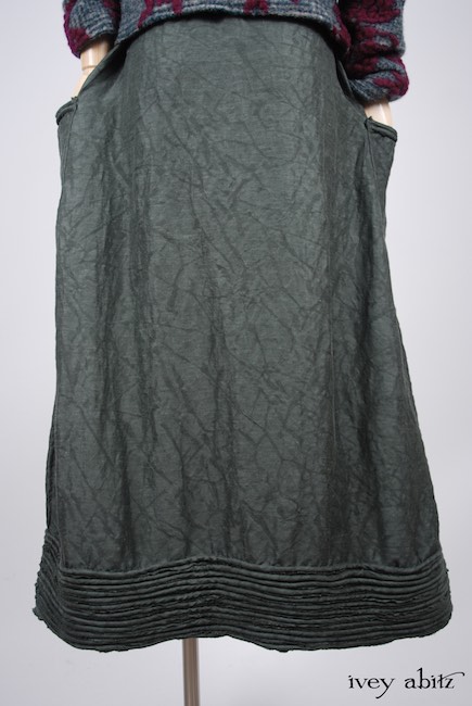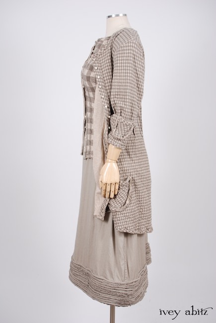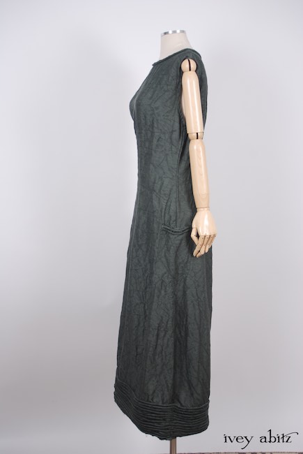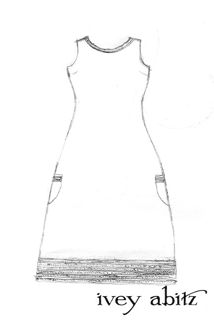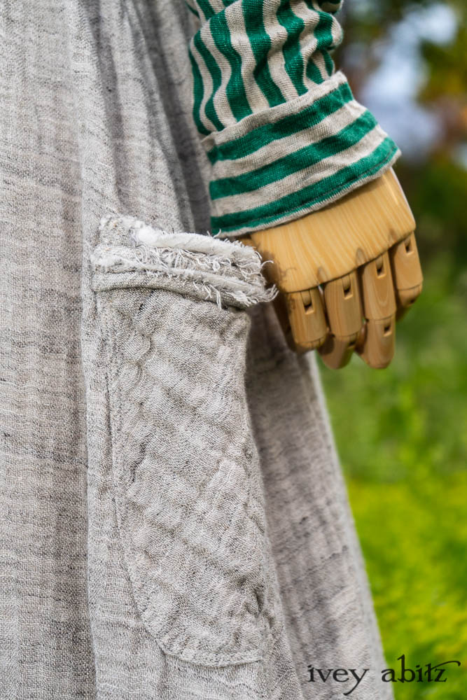 Pockets at the side seams have a hint of the tilled field lines along the top. So, too, the neckline with its row and raw edge adornment.
