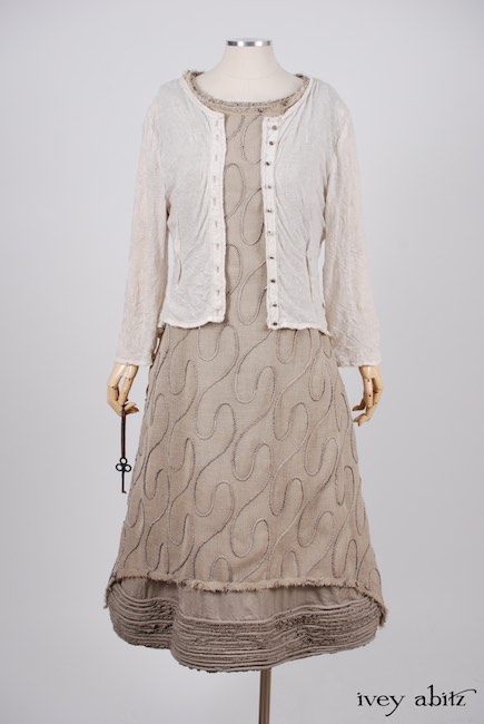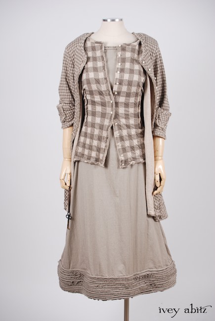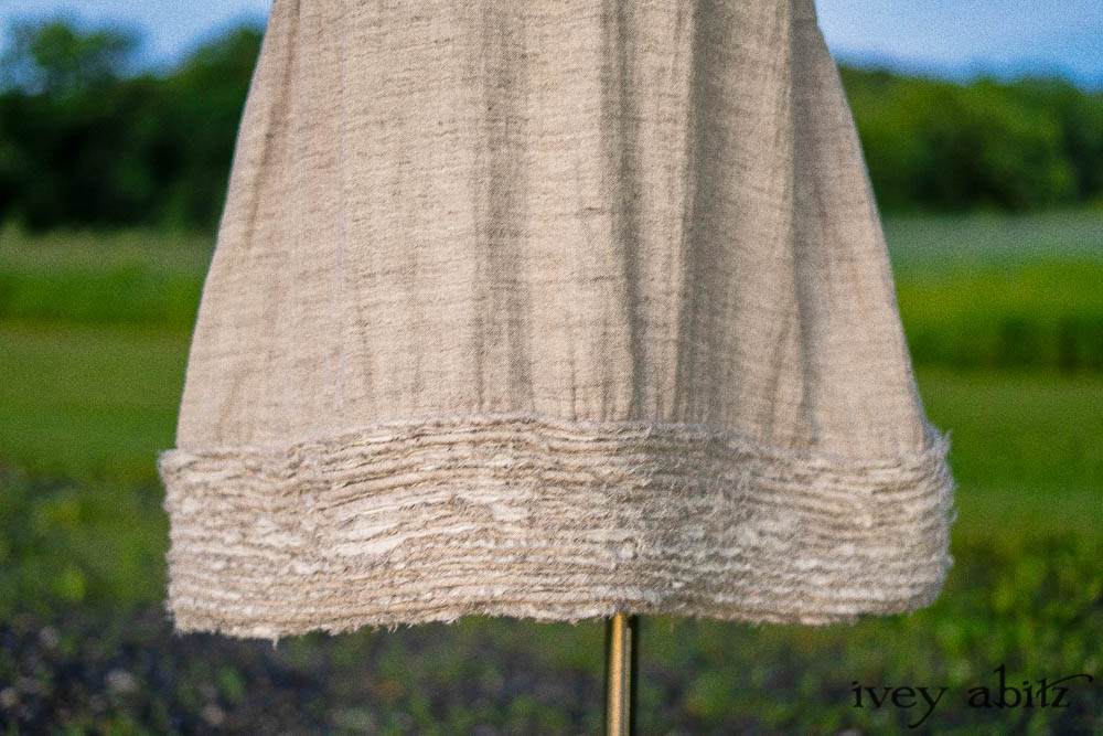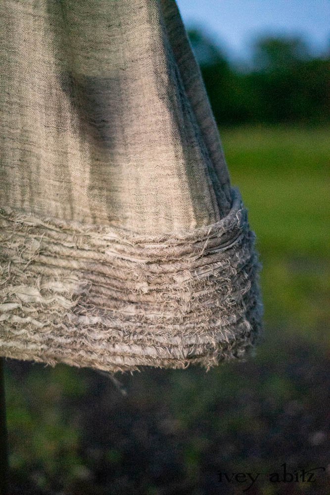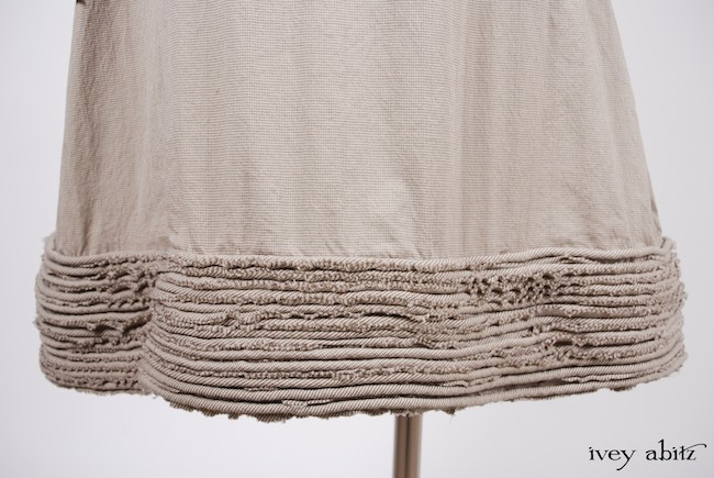 The bottom hem detail of the Tilling echoes the earth that gives nourishment and life to us all with its fabric rows and textured raw edges. The Tilling Frock is representational art in clothing form.