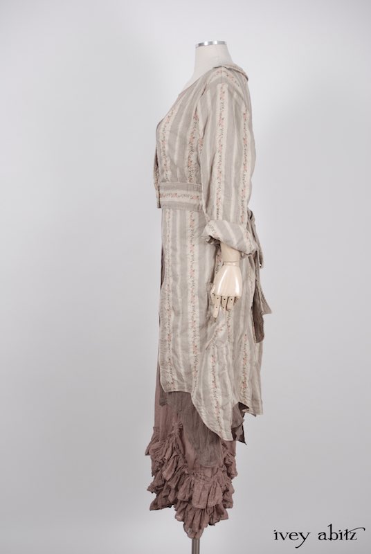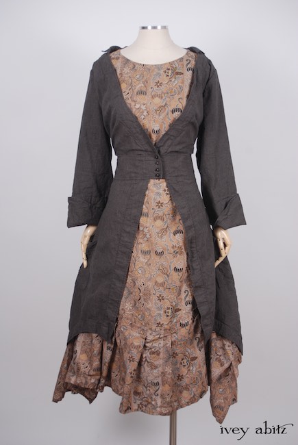 The Bellingham is meant for layering with flattering lines for the quintessential layering duster. It is meant to feature the “base” frock worn underneath (like our Fennefleur, Blanchefleur, etc.) with precision and ease.