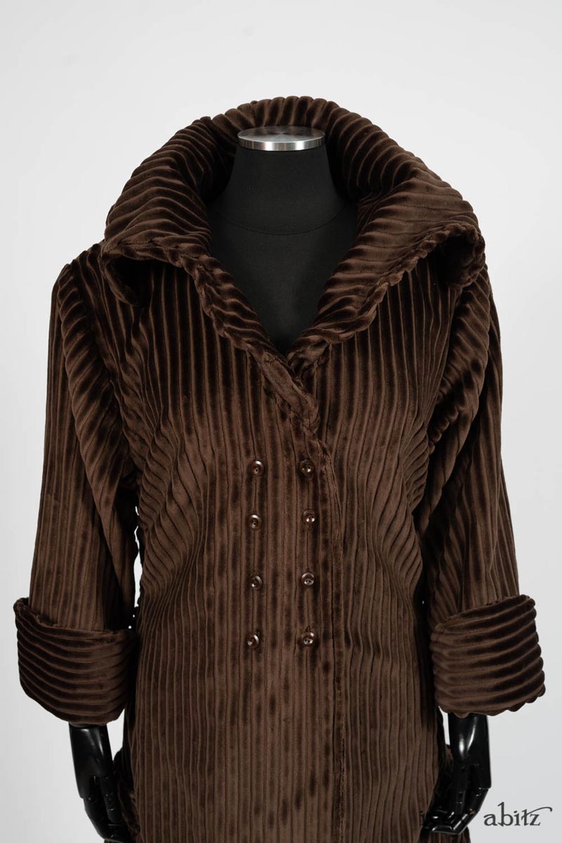 - Choose our thicker fabrics to wear the Eleanora as an outerwear, cooler weather garment (the featured thick cotton corduroy is an example of such). Choose our more lightweight fabrics to wear it as a lightweight duster to wear indoors.