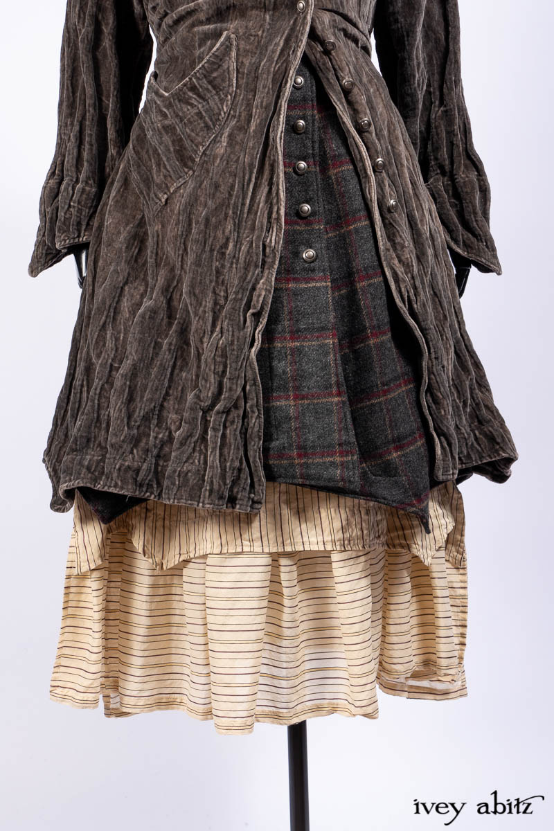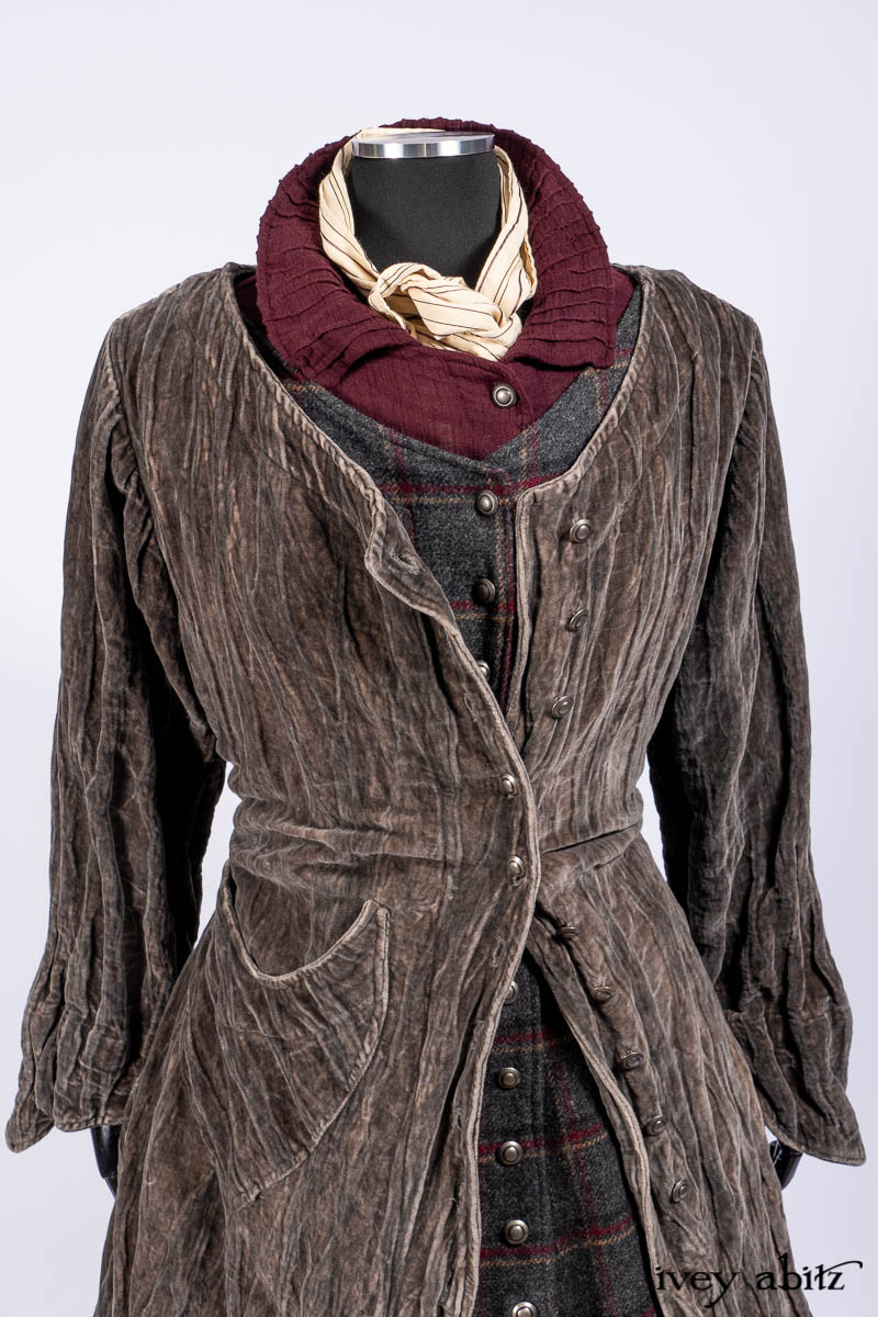 The Ellis Duster Coat was designed to be worn over the Liberté Frock, Ellis Shirt, Ellis Frock, and Bedloe Frock. Due to its versatile design details, the Ellis can also be worn over most of our base layering frocks, skirts, and trousers.