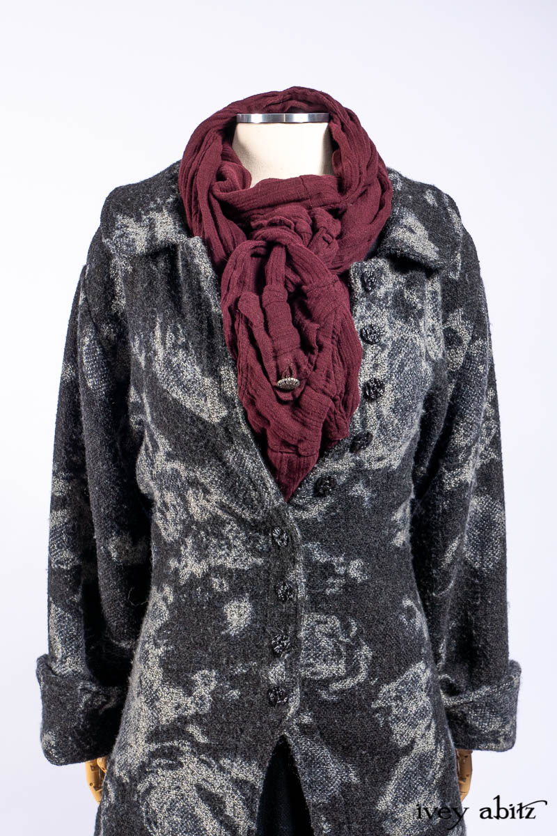 Choose thicker woolens for an outdoor coat. Choose our lightweight cotton voiles for an indoor duster to wear over your Ivey Abitz frocks, trousers, and skirts.