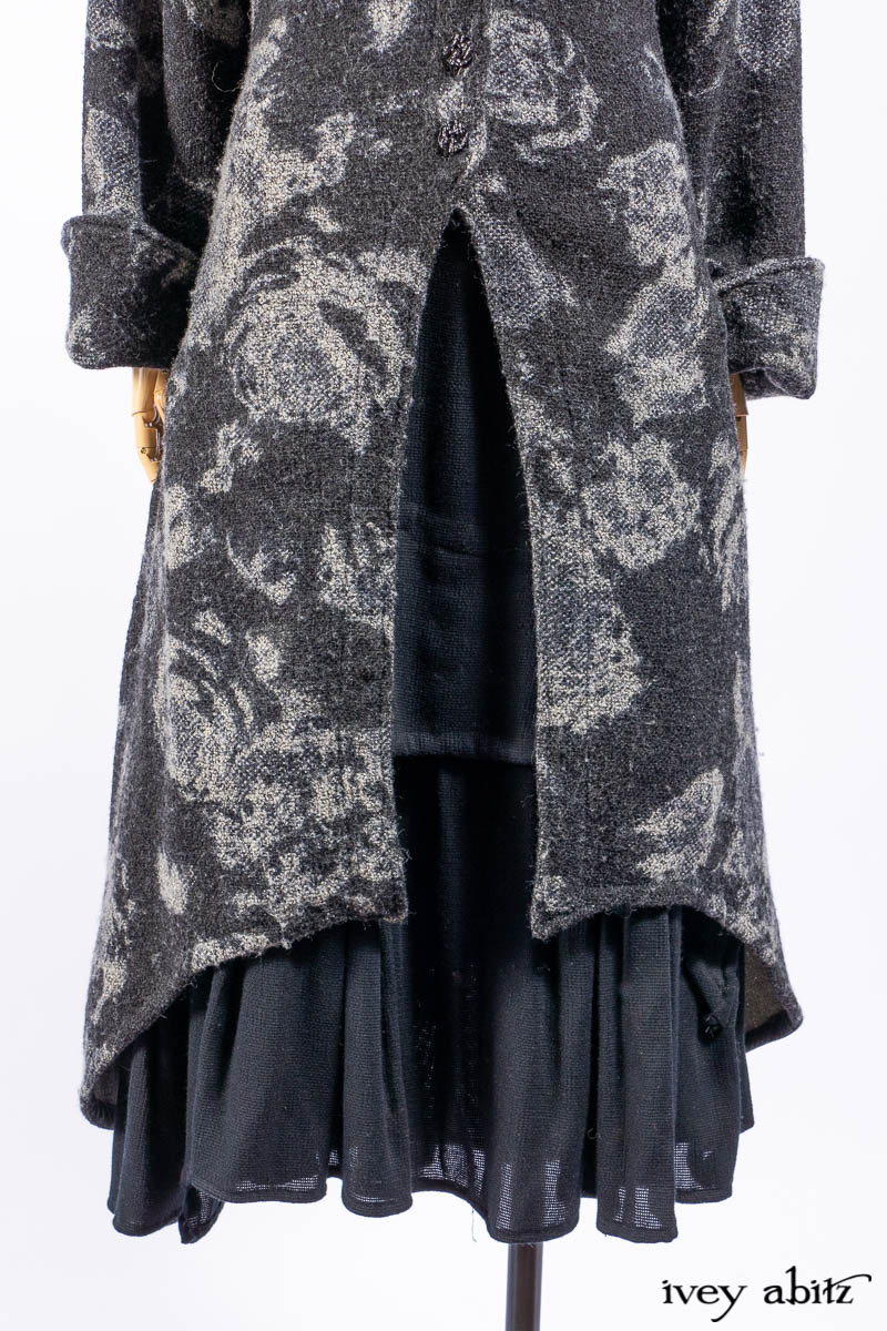 The Monceau Duster Coat is wonderful over most of our frocks because its curved collar and bottom hem, along with its slits in the side seams and back bottom hem, complement most of our other design collections. We especially like it paired with our Blanchefleur Frock, Bartholdi Frock, Fairholme Frock.