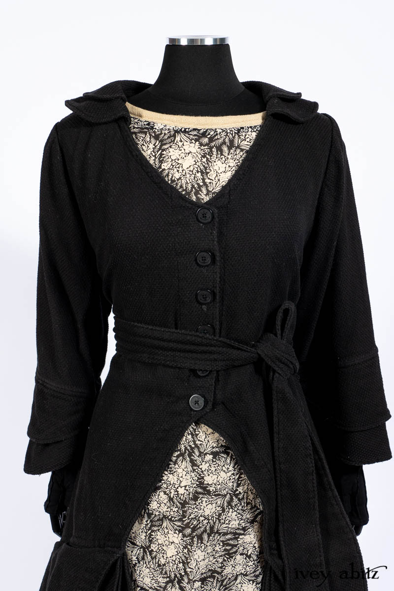 - The waistband in the frock becomes ties in the back. Wear loose for a straighter silhouette. Tie a bit closer to the back, and the side ties then create a bit of a peplum effect, cinching in the dress at the waist.