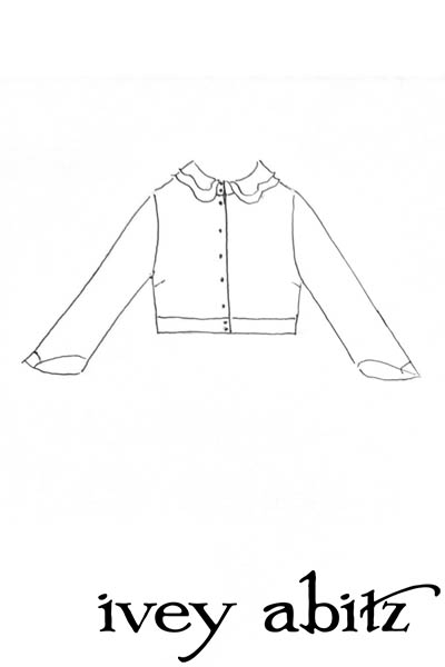 - A double collar with undulating curves is the feature. These curves are echoed in the detail at the sleeve edge.