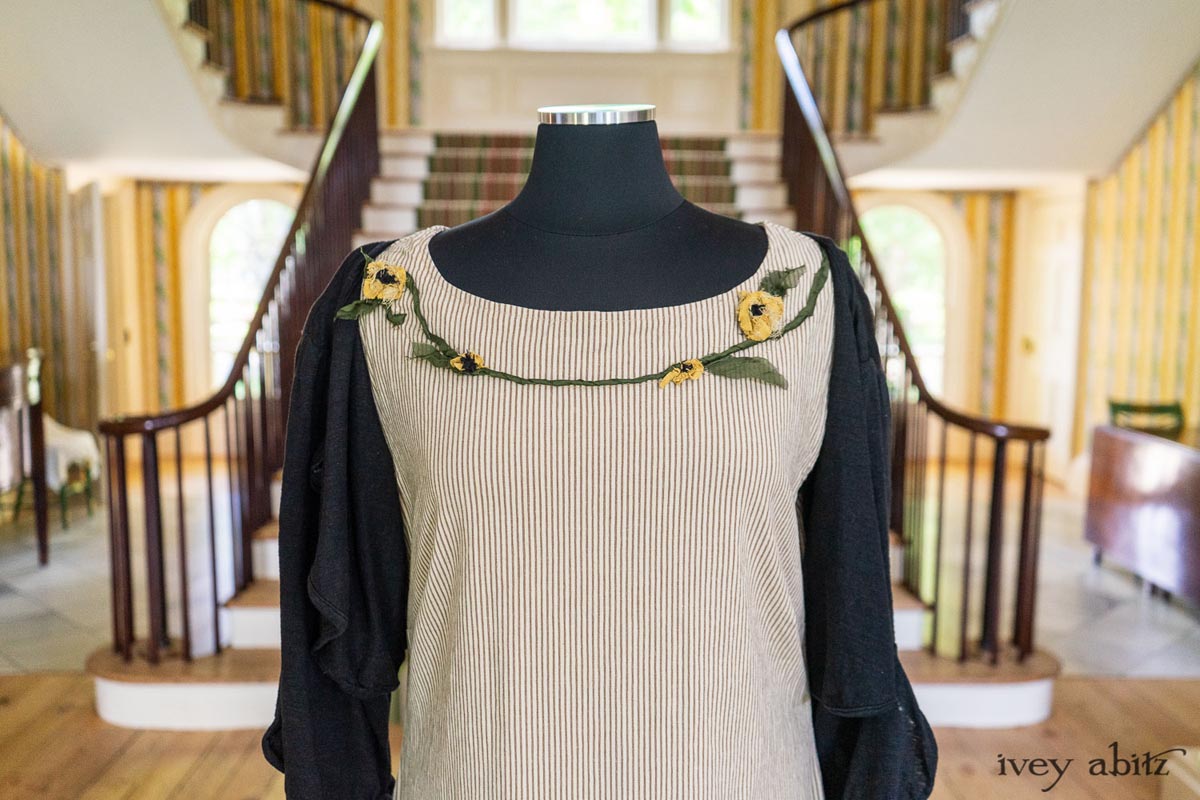 • A rare antique button adorns the front of each Addy. Buttons vary and complement the fabric you choose. It can be worn buttoned or unbuttoned.