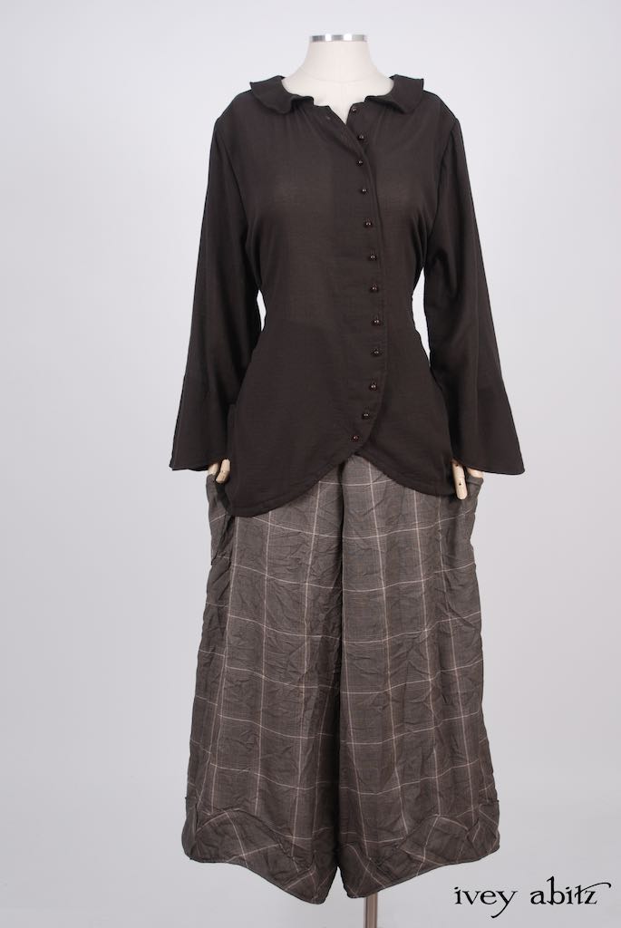 • Lovely curved button placket creates an elongated and sweeping line on the body.