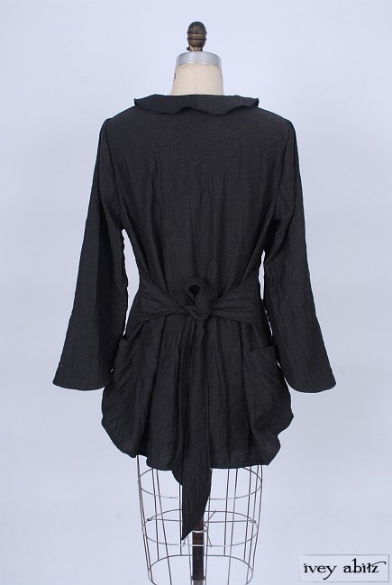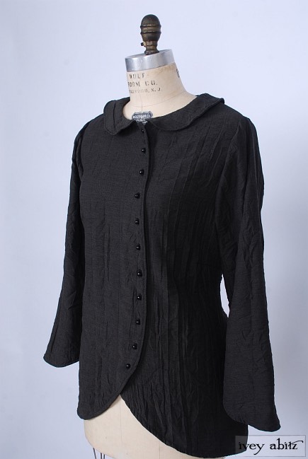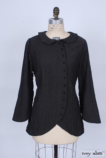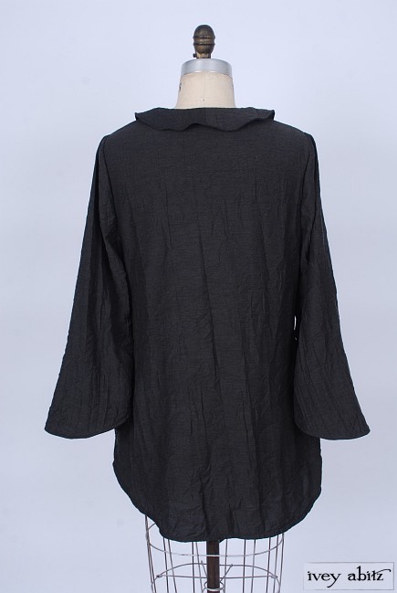 • Rounded collar can be buttoned to the neckline or worn open to create a flattering asymmetrical v-shape to frame the face.