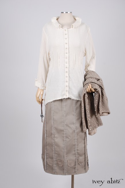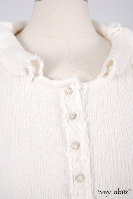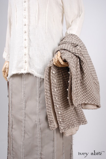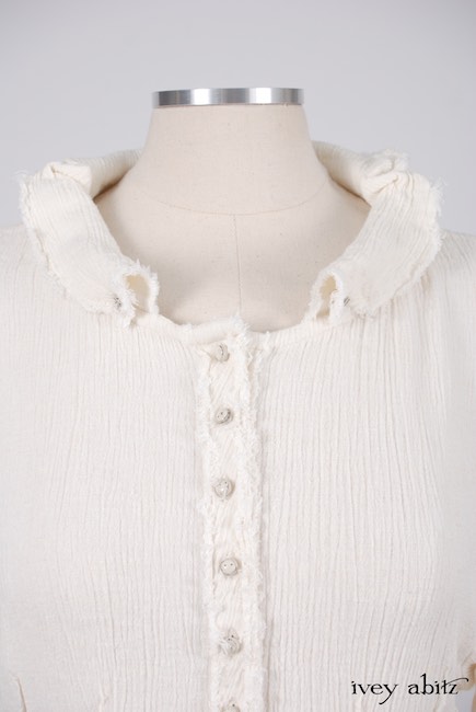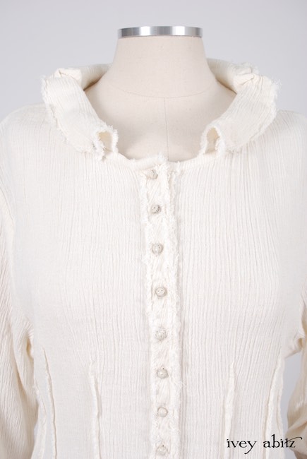 - Collectible antique buttons with their original patina adorn the front of the shirt. Buttons vary depending upon the fabric chosen.