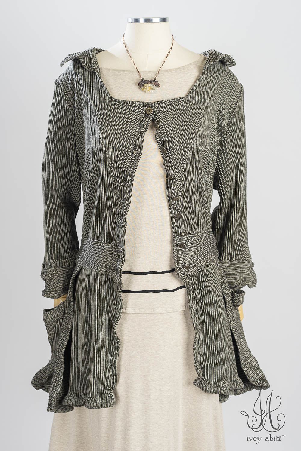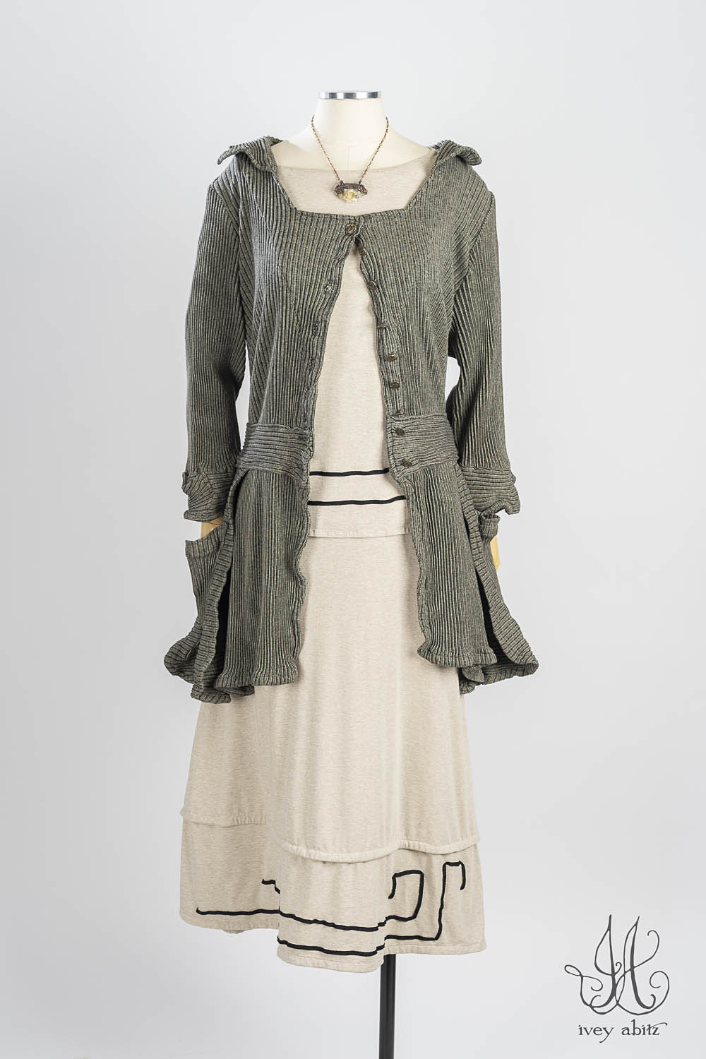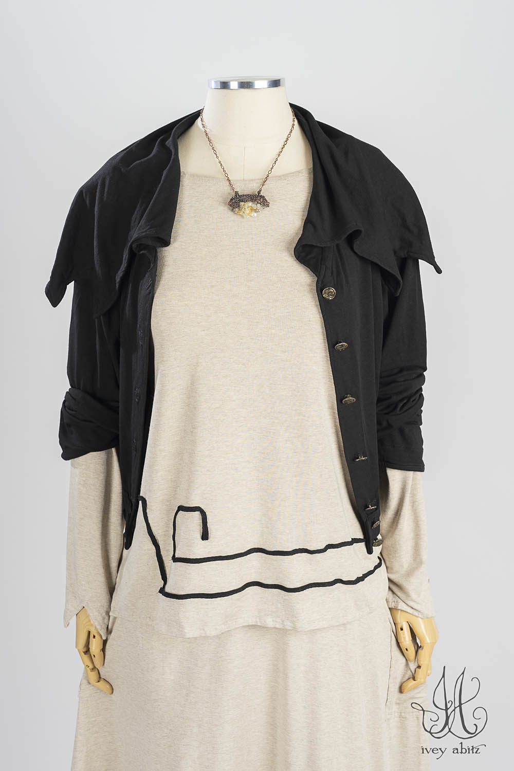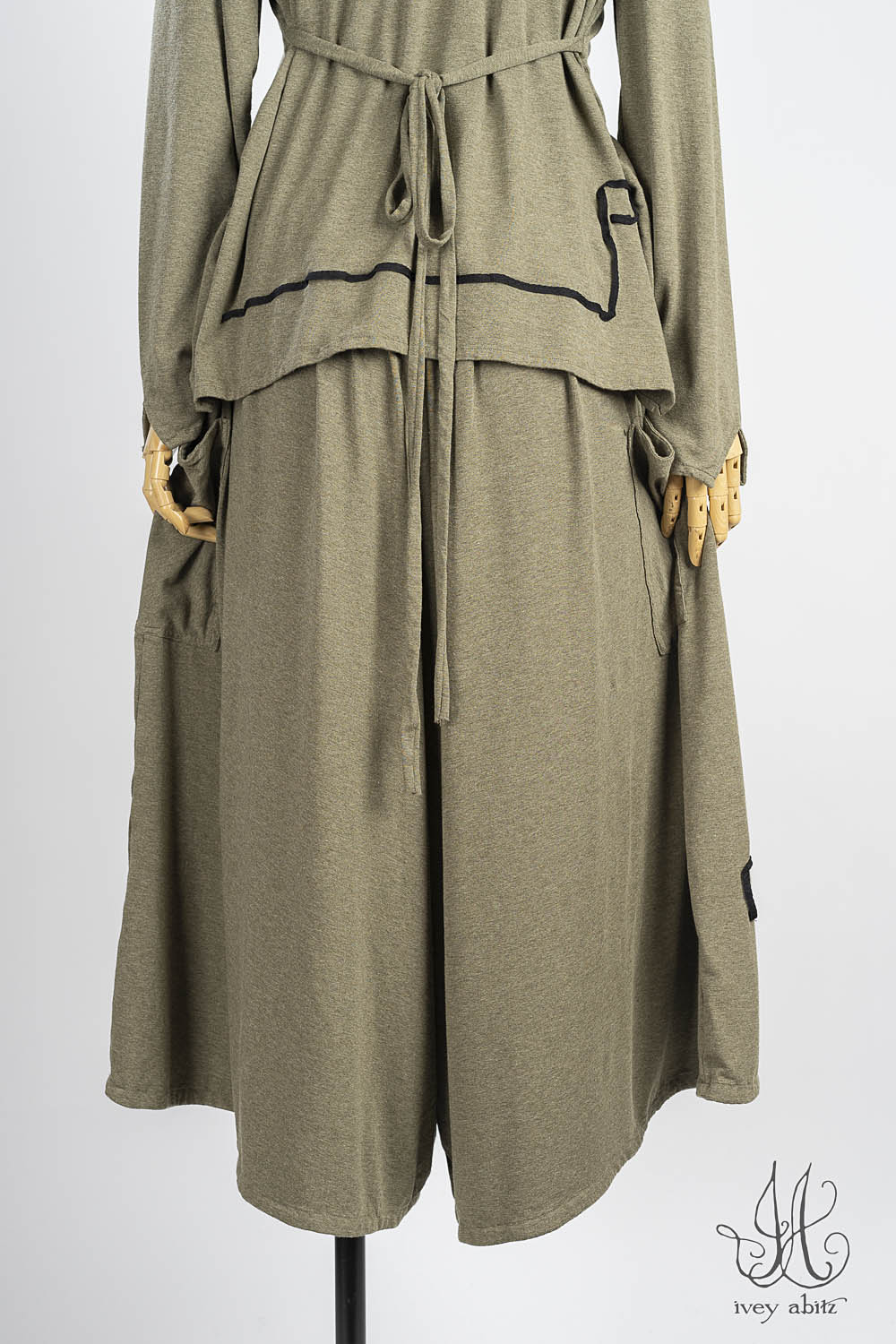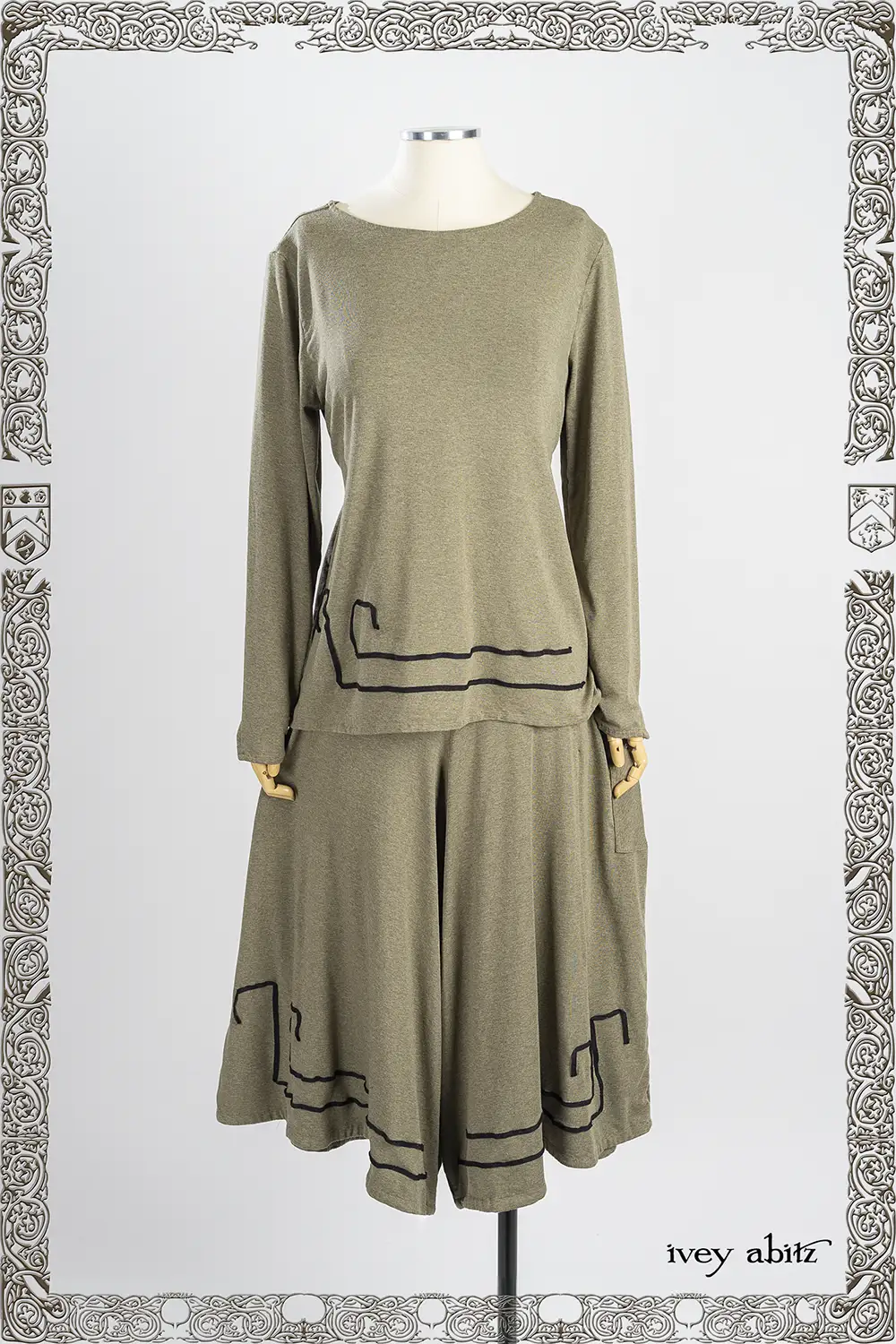 The Lounging designs — the Lounging Shirt, Skirt, and Loungers (Pants)— are meant to be mixed and matched together. We also love the look of the Lounging Shirt with a classic Ivey Abitz pair of wide legged trousers. Tuck it into one of our skirts. Wear it over one of our sleeveless frocks. You get the idea — it goes with so many of our designs!Â