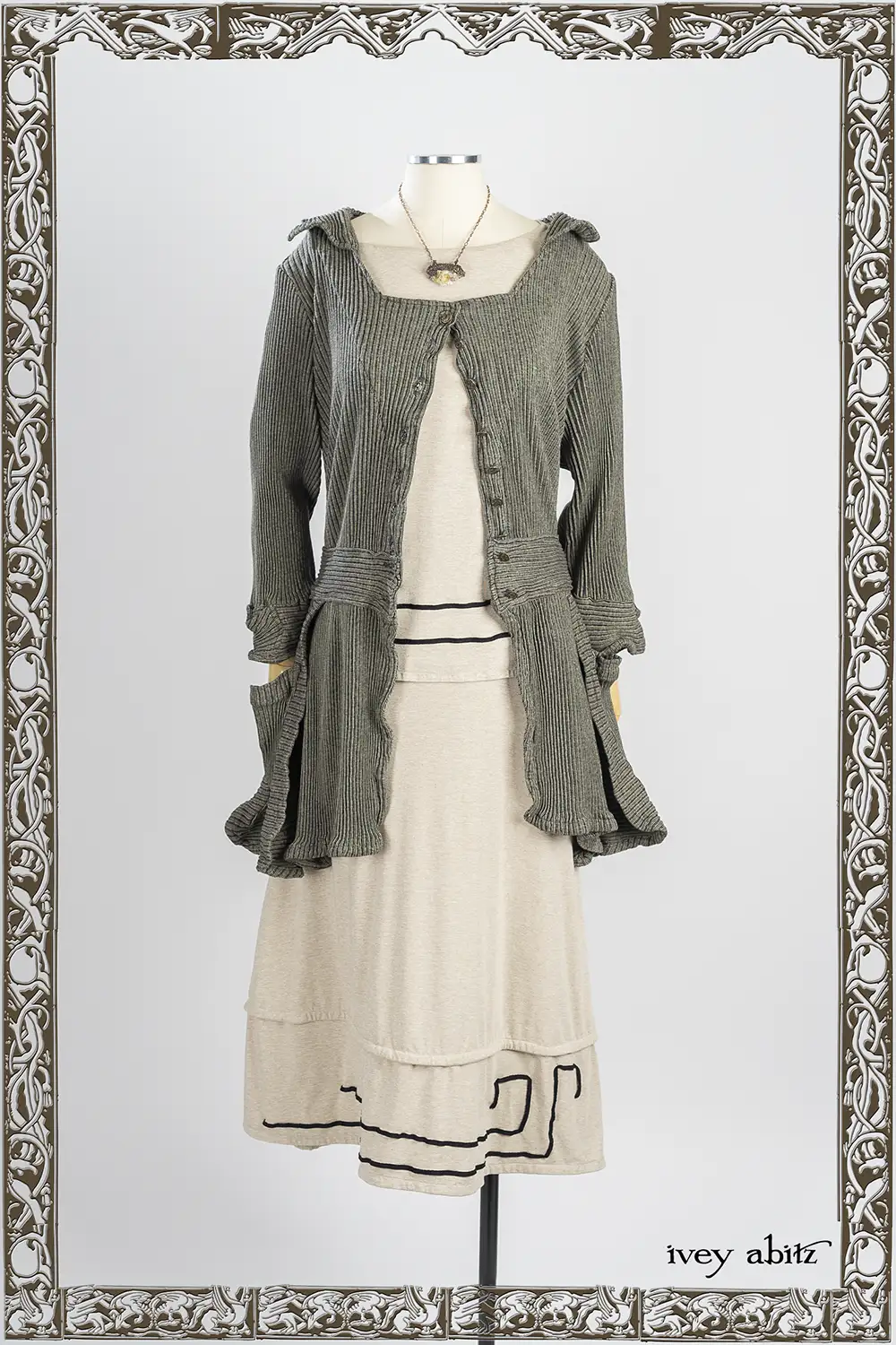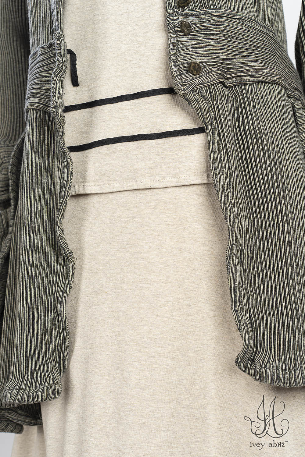 • Angled cutouts on the sleeve edges and side seams echo the lines and detail of the Arts and Crafts Movement.Â