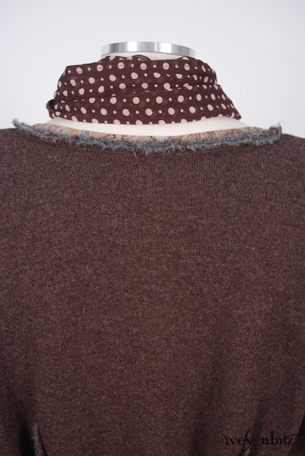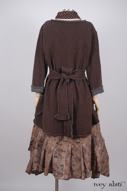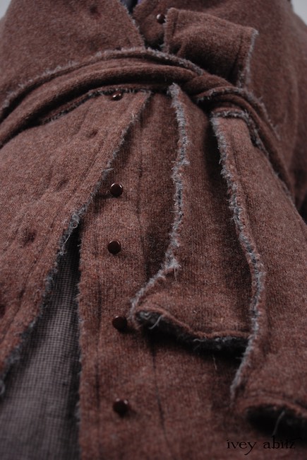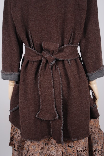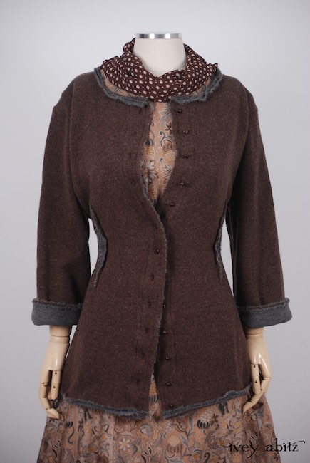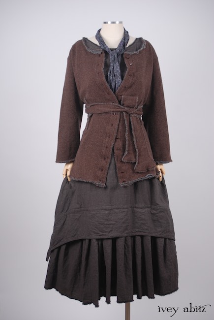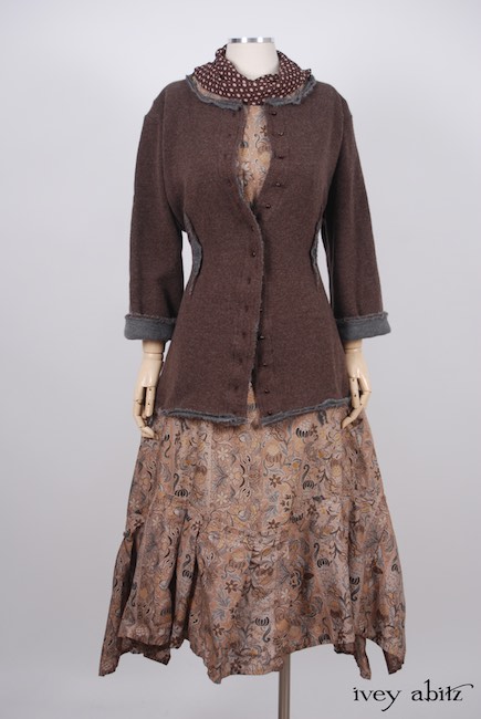 - Vertical raw edged darts at the waist create a lovely feminine fit and add texture to the design.