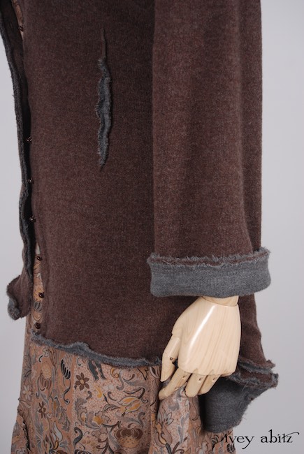 - Side seam pockets are convenient and visually interesting with their raw edged detail.