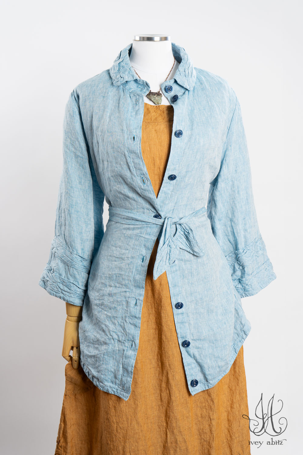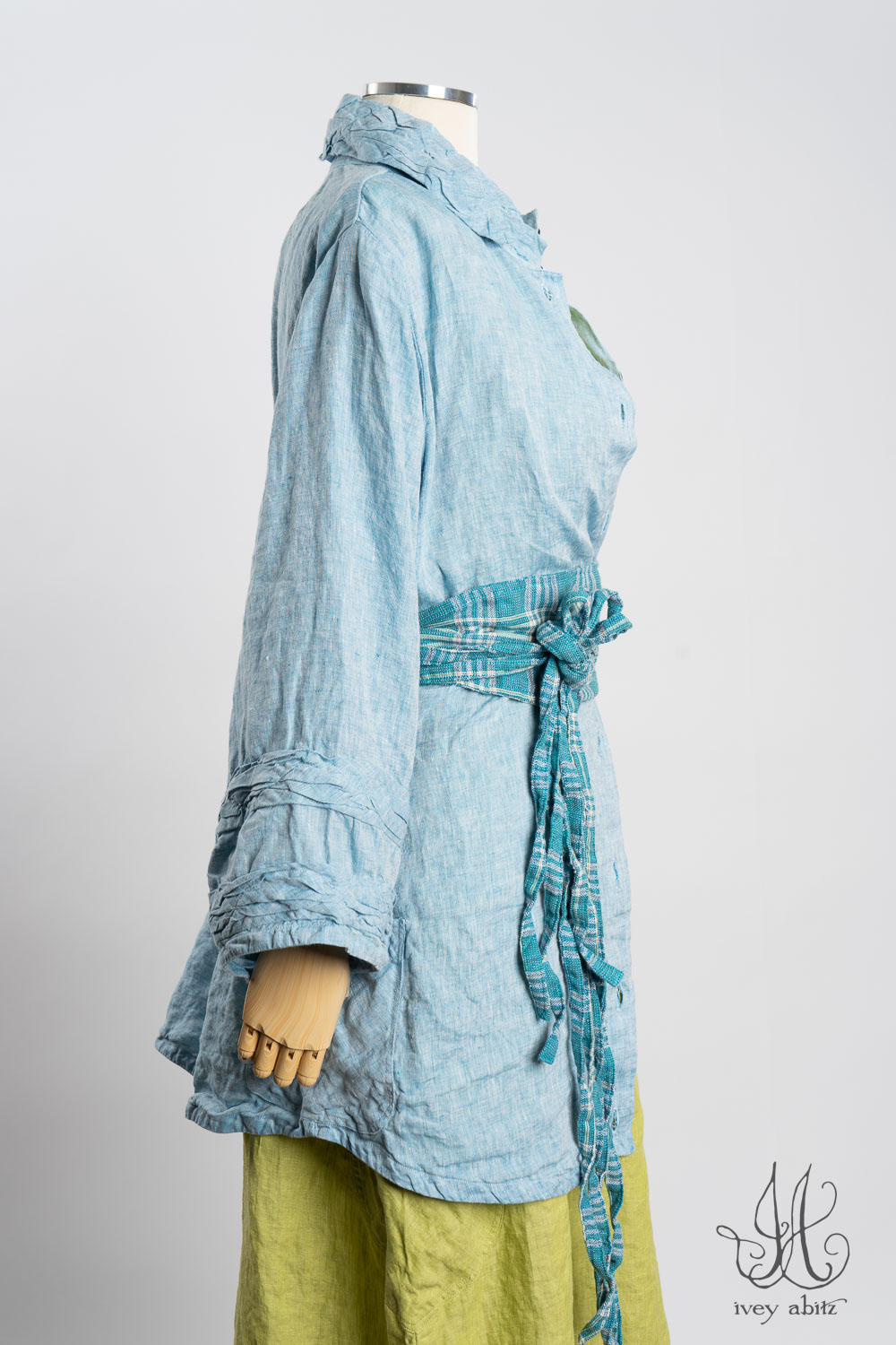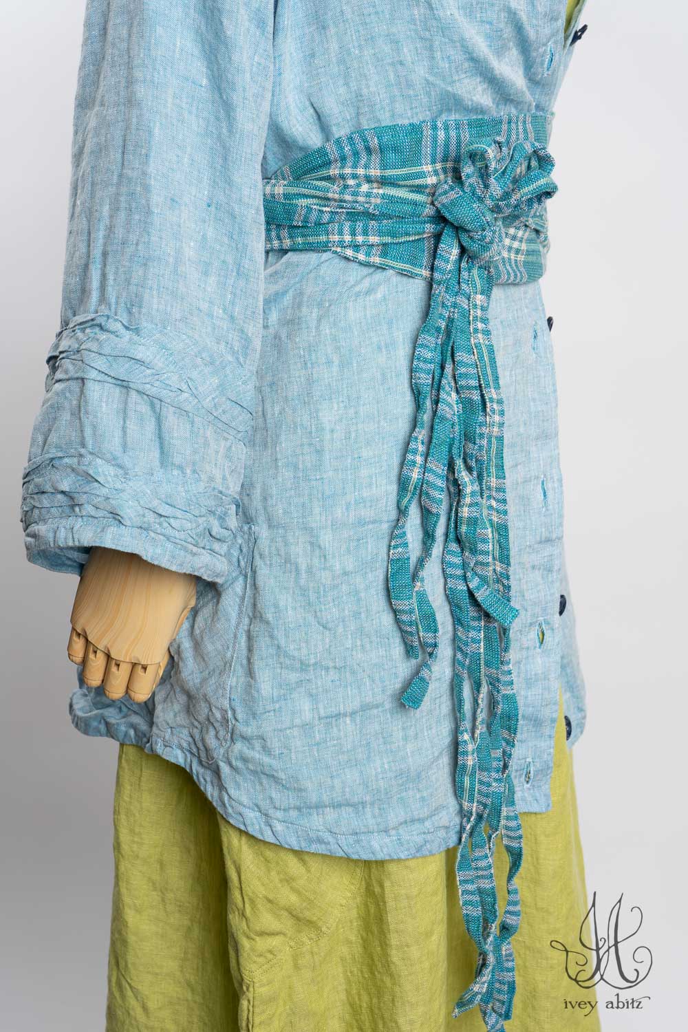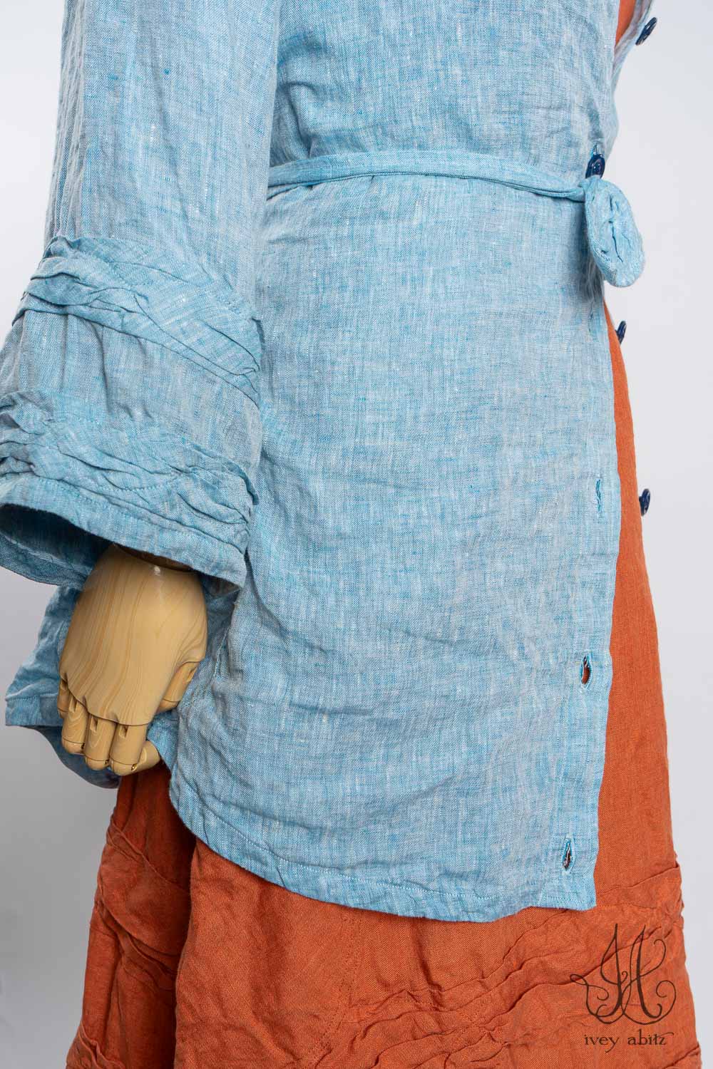 - Subtle darting at the chest and gentle tailoring in at the waist creates a comfortable silhouette. The drape is relaxed and easy fitting. If you would like to accentuate the waist and cinch it in to change the look and fit of the shirt to your liking, we recommend choosing side ties for your shirt. You can tie them in the back or front, as needed.