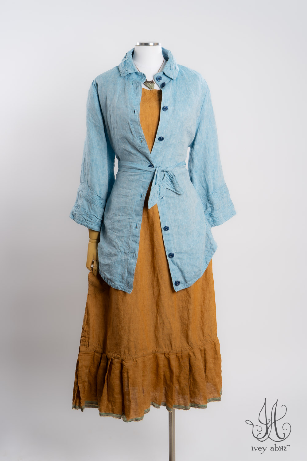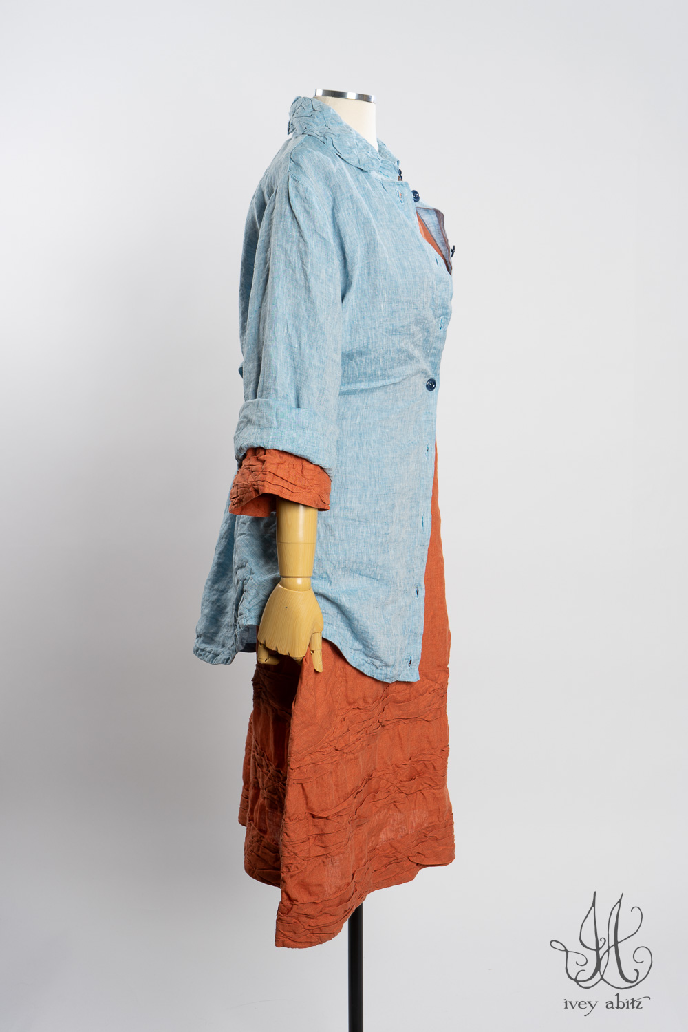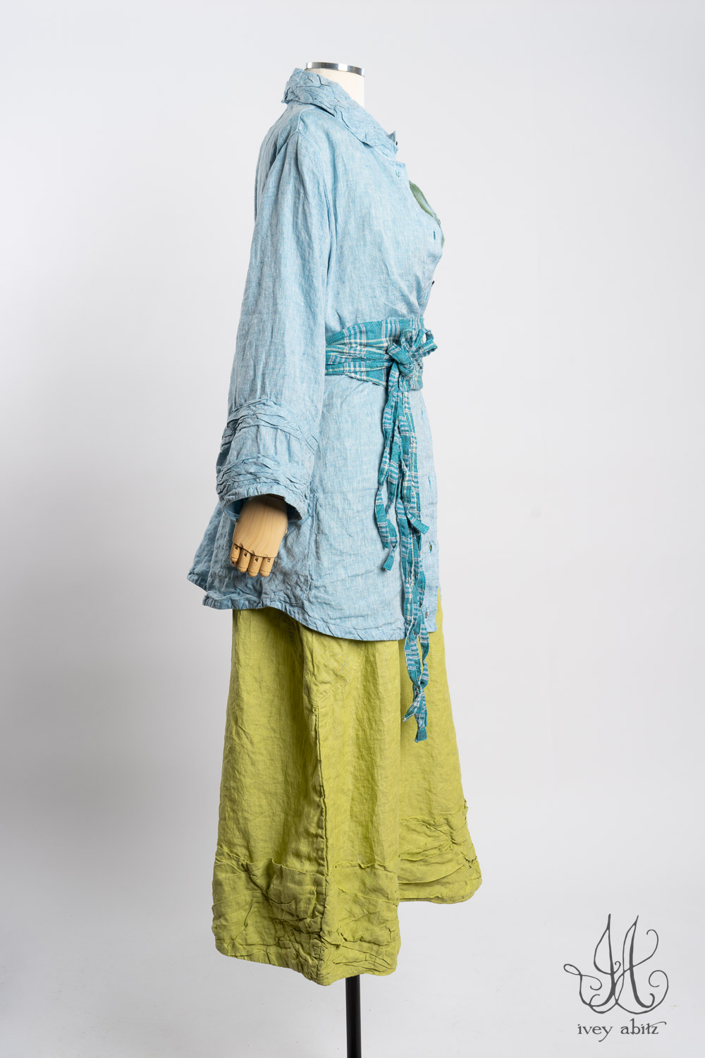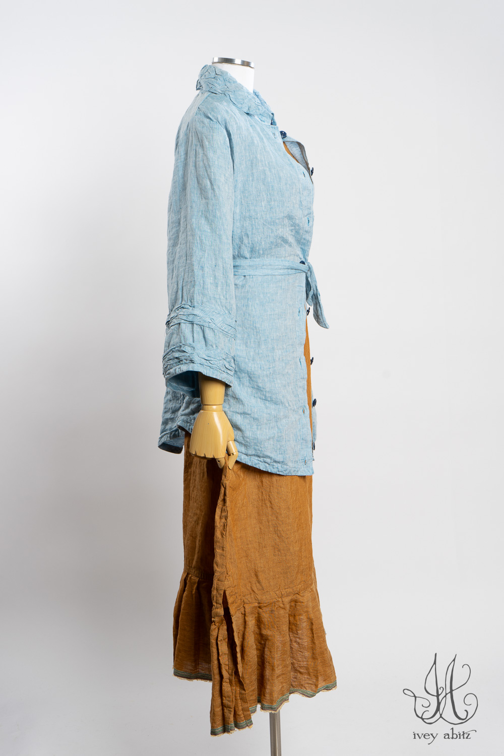 - Subtle darting at the chest and gentle tailoring in at the waist creates a comfortable silhouette. The drape is relaxed and easy fitting. If you would like to accentuate the waist and cinch it in to change the look and fit of the shirt to your liking, we recommend choosing side ties for your shirt. You can tie them in the back or front, as needed.