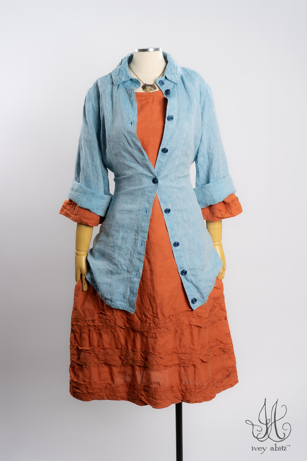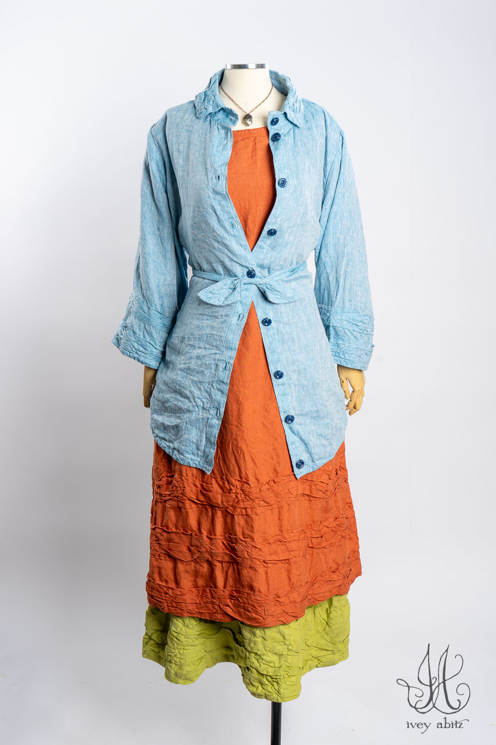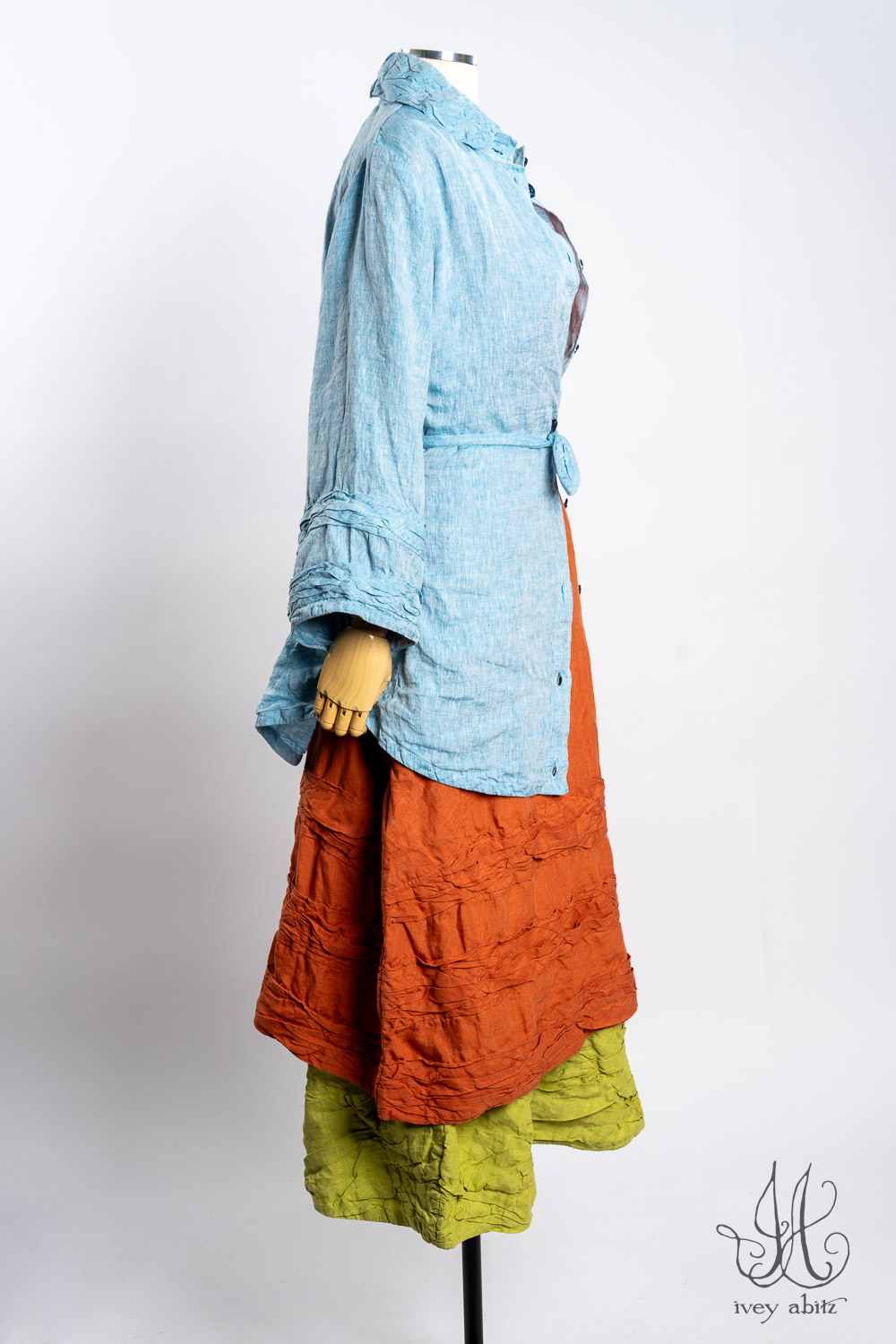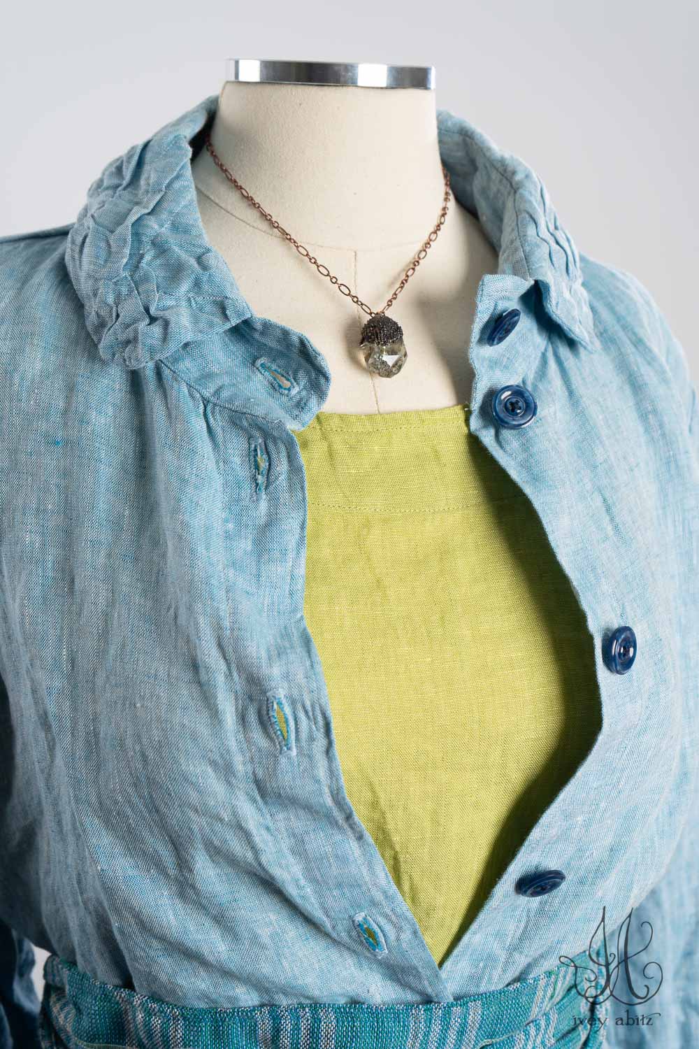 - Subtle darting at the chest and gentle tailoring in at the waist creates a comfortable silhouette. The drape is relaxed and easy fitting. If you would like to accentuate the waist and cinch it in to change the look and fit of the shirt to your liking, we recommend choosing side ties for your shirt. You can tie them in the back or front, as needed.