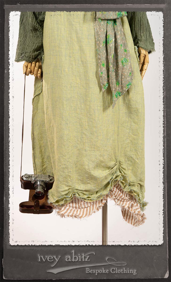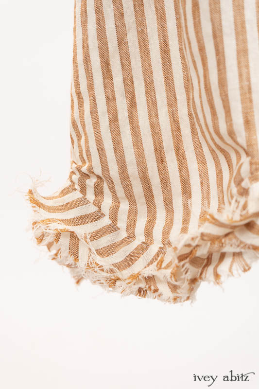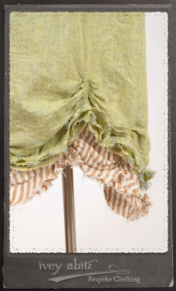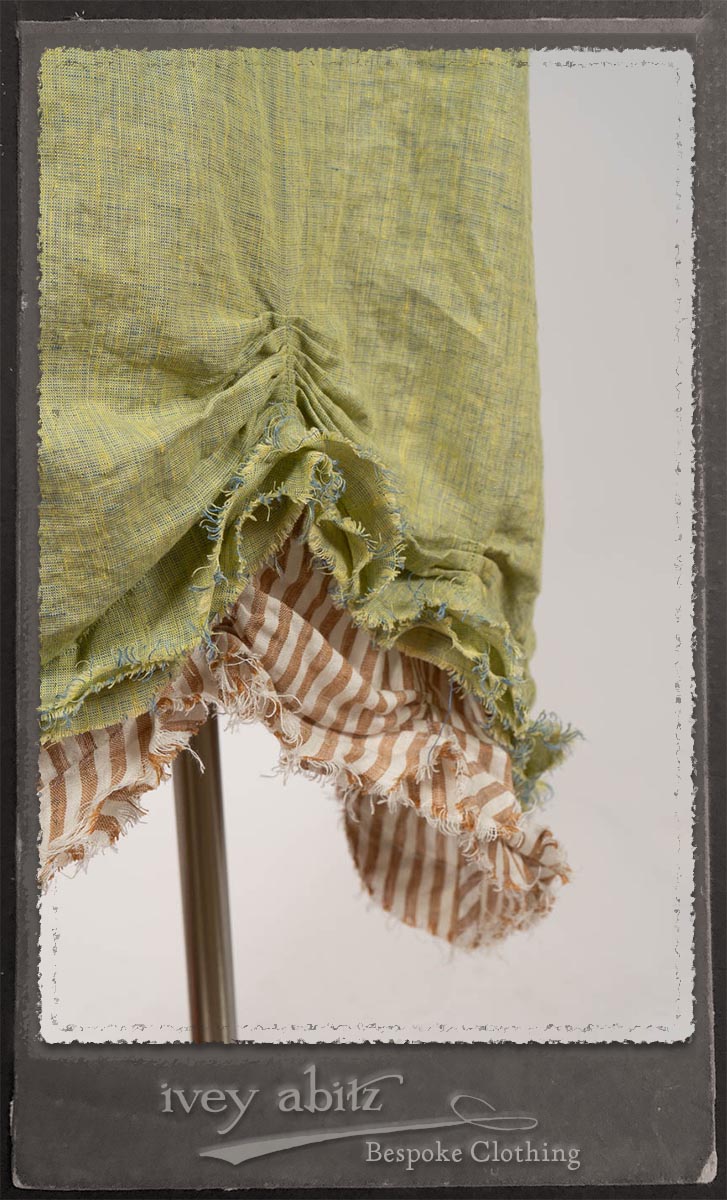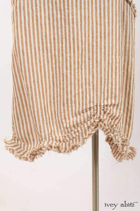 - The layers of raw edges feature the natural fibers in the weaves, allowing them to meander as they wish across the garment, echoing the flow of a river in the sand.