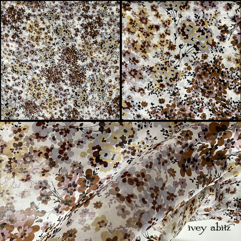 Floral cotton voile is always a good idea for a lovely summer Ivey Abitz frock! Now, you can have one created in an archived fabric in one of your new Ivey Abitz designs. One-of-a-kind just got even rarer, if that’s possible!