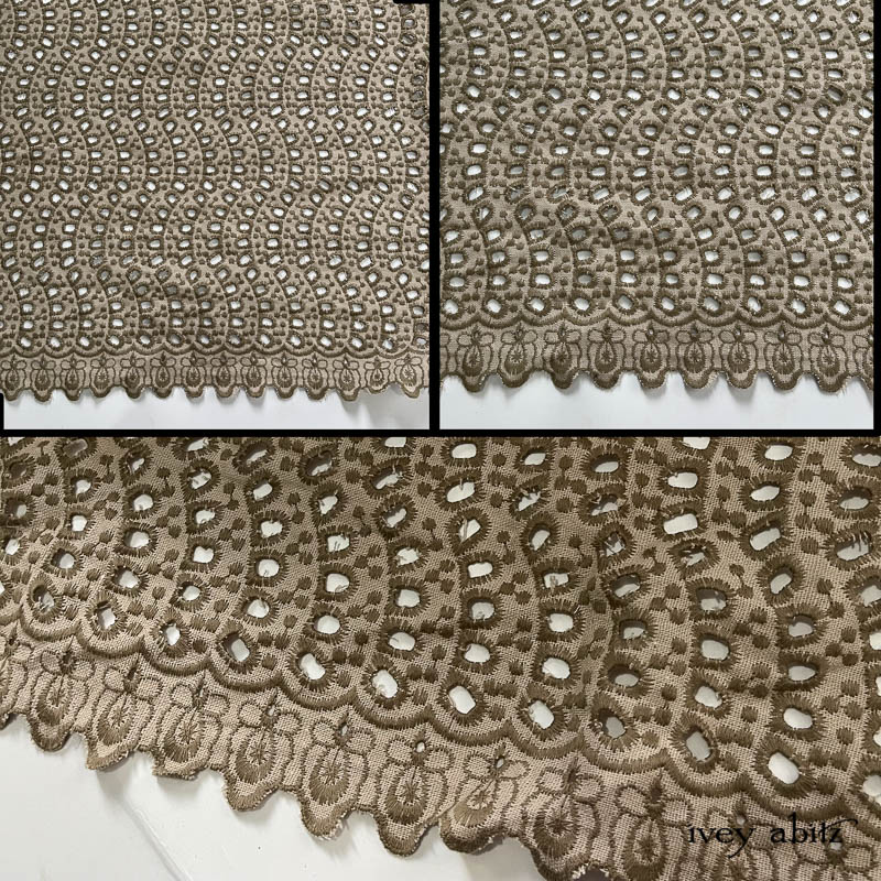 All season weave. Set aside for the Covante Frock at a 45″ length that can feature the scalloped edge along the bottom hem.