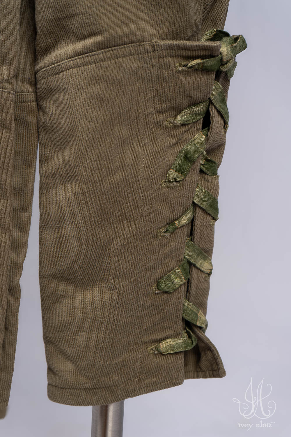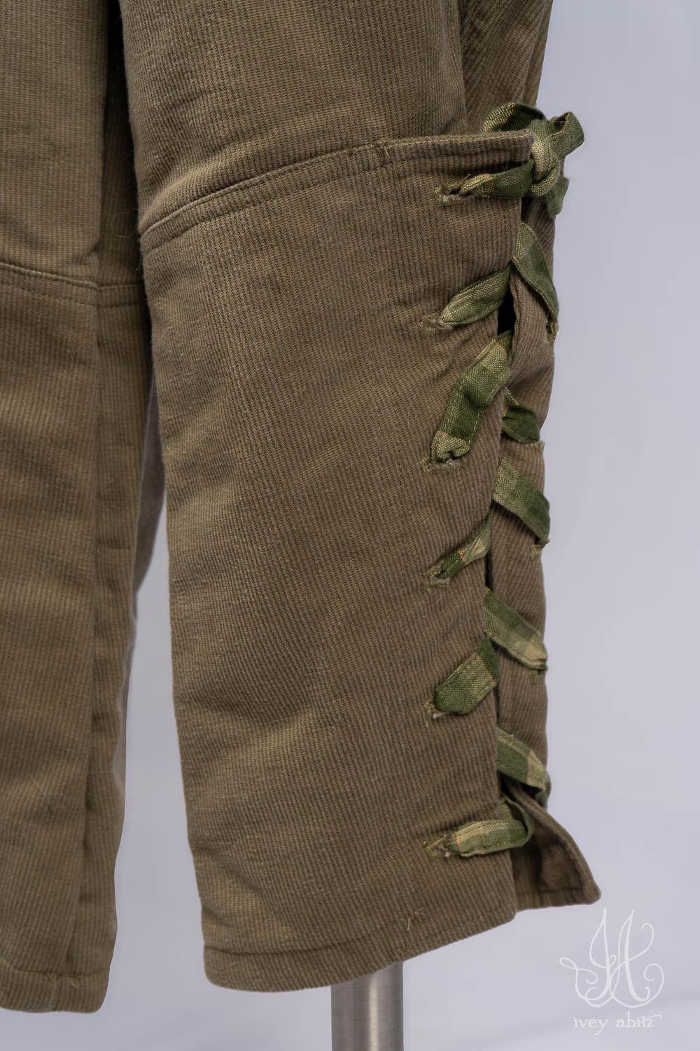 • Lacing at the outer calf allows you to adjust the fit and feel of the legs. Stellar trousers for long rambles in the woods and hikes to keep your trousers close to the body. Just as stellar and clever for urban life. Lacing is sometimes created with contrasting hues, depending upon the fabric (and its thickness) that you choose.